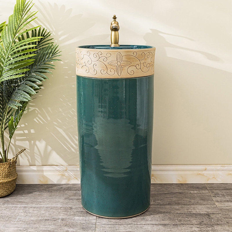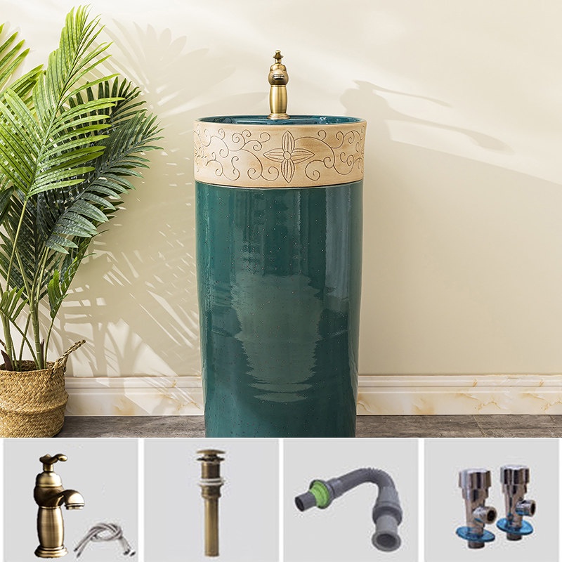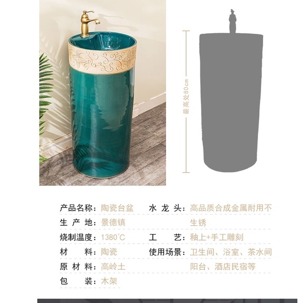 Ceramic Integrated Column Wash Basin Home Bathroom Washbasin Outdoor Courtyard Basin Floor-Standing Pedestal Basin6