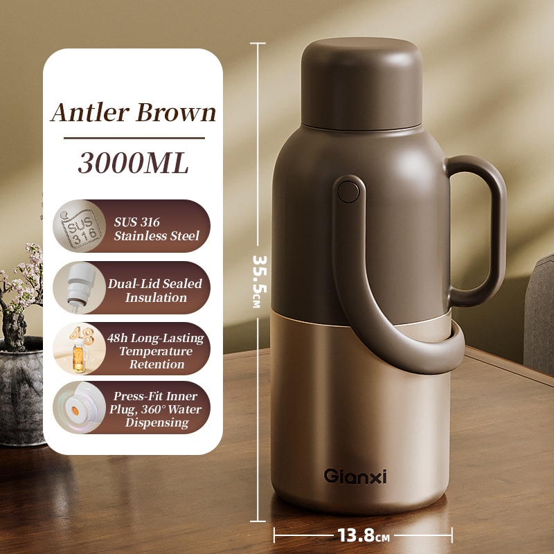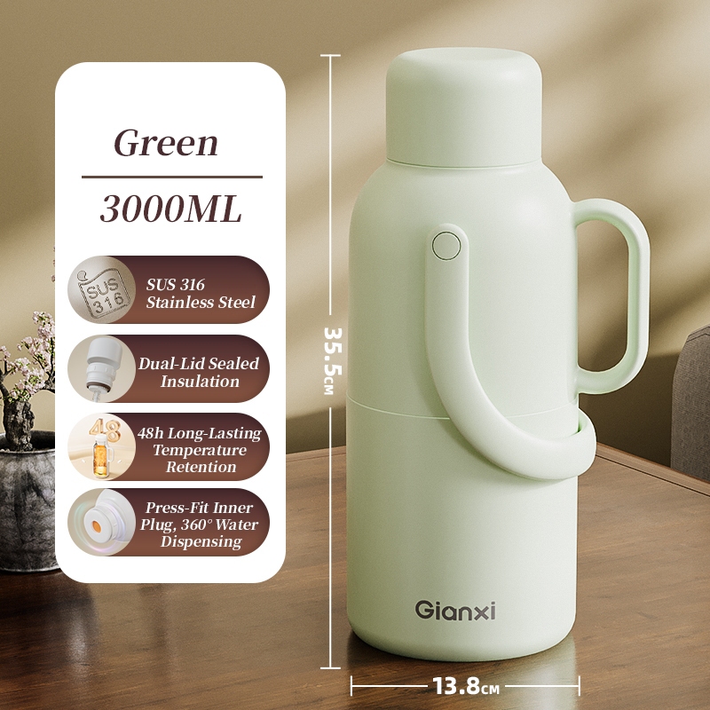 GIANXI 3.2L Vacuum Insulated Thermos, 48 hour Insulated Portable Leak Proof Water Bottle