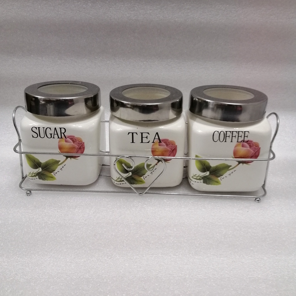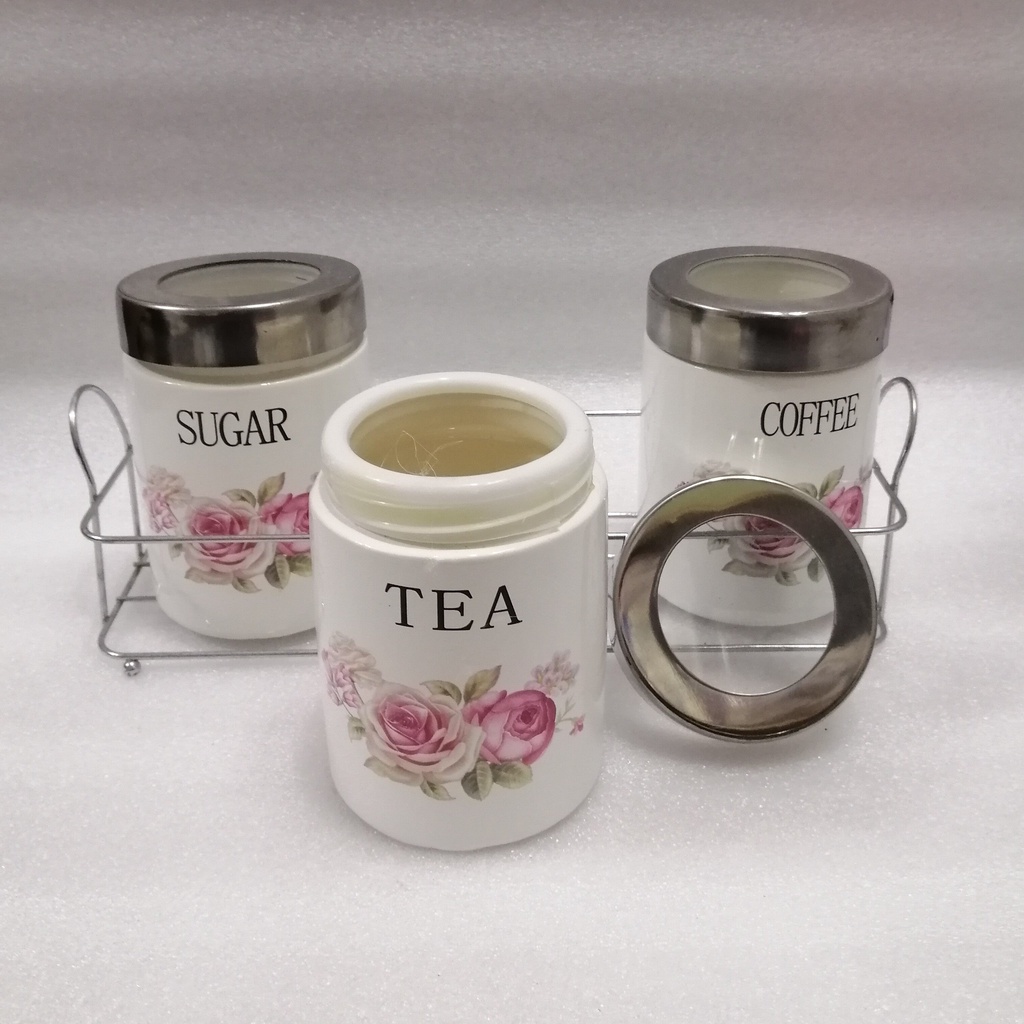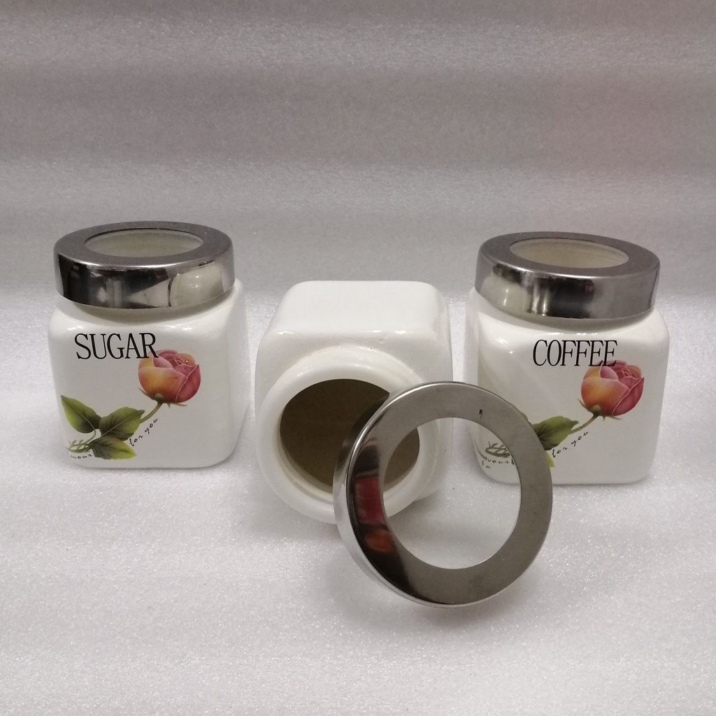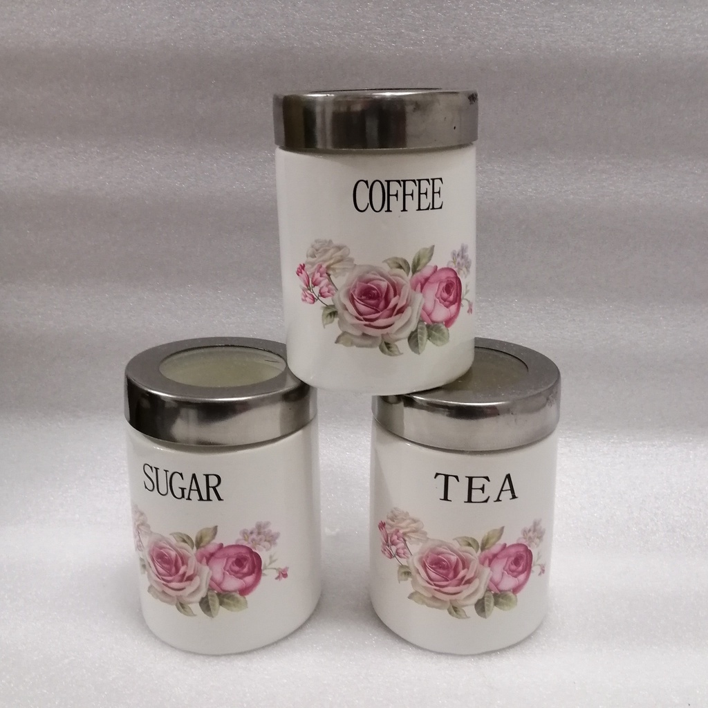 Ceramic Tea Coffee Sugar Storage Jars Condiment Pots Container Jars 3 Pc 600ml Tea Coffee Sugar Jar Canister Storage