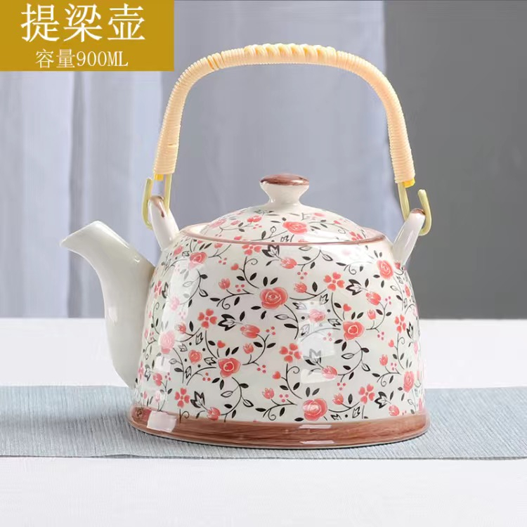 Ceramic household small fresh tea set teapot, restaurant teapot with filter screen, large lifting beam teapot, hotel restaurant teapot