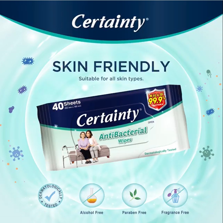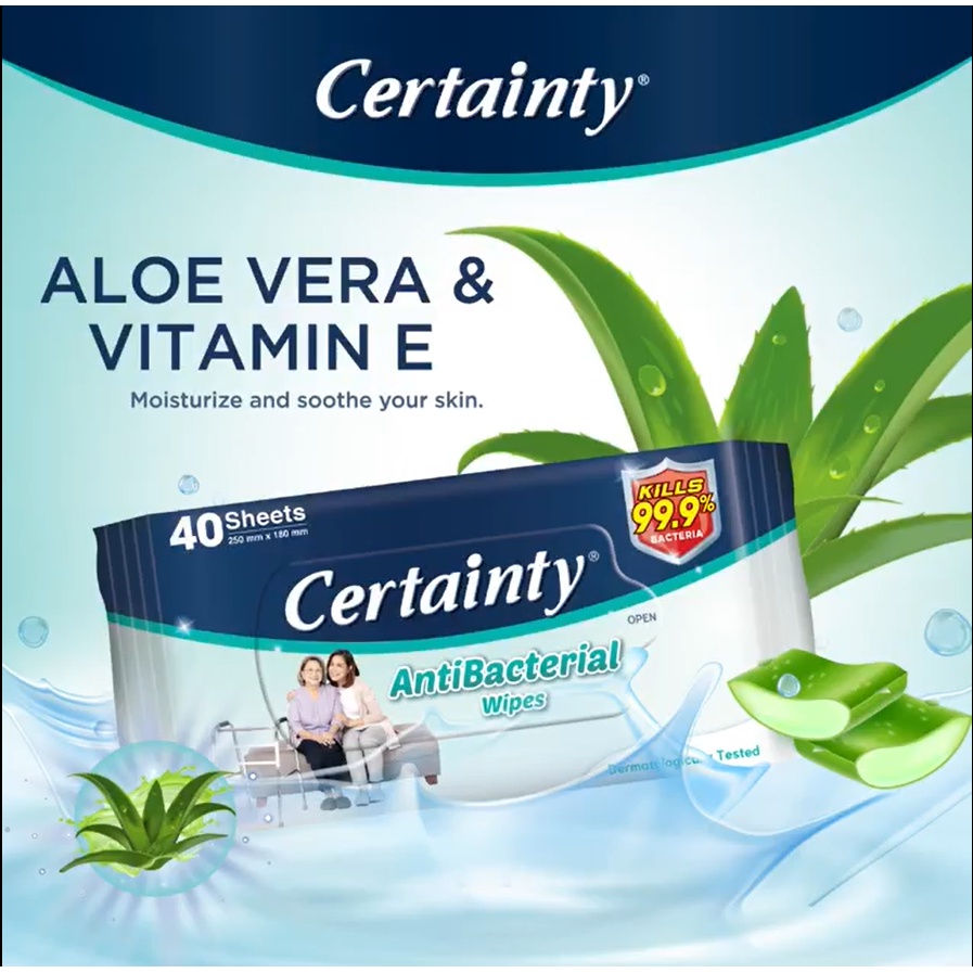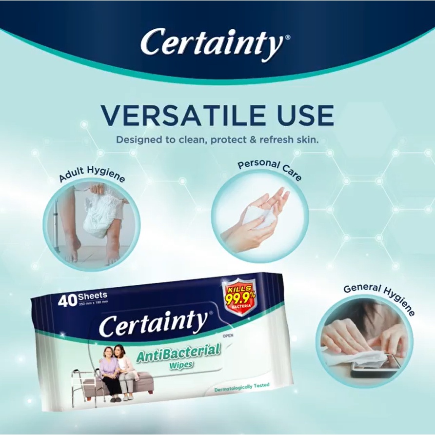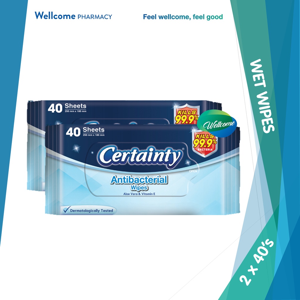 Certainty Antibacterial Wet Wipes - 2 x 40's (Twin Pack)