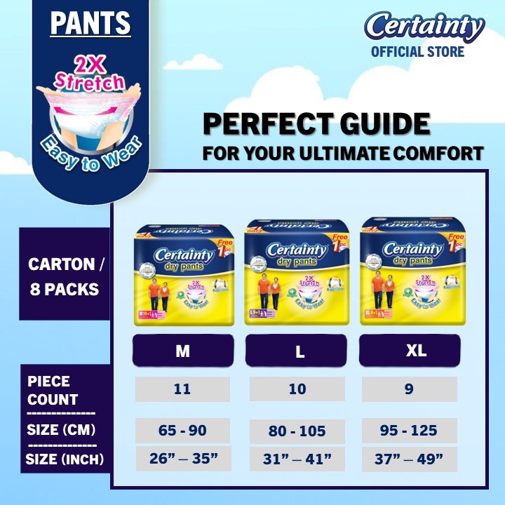 Certainty Dry - Pants Adult Diaper Regular Pack M10+1/L9+1/XL8+1