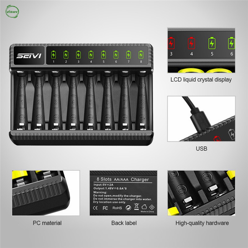 Cfstore.my Beston 8 Slot Fast Smart Intelligent Lithium Battery Charger for 1.5V AA AAA Rechargeable Battery Quick Charger