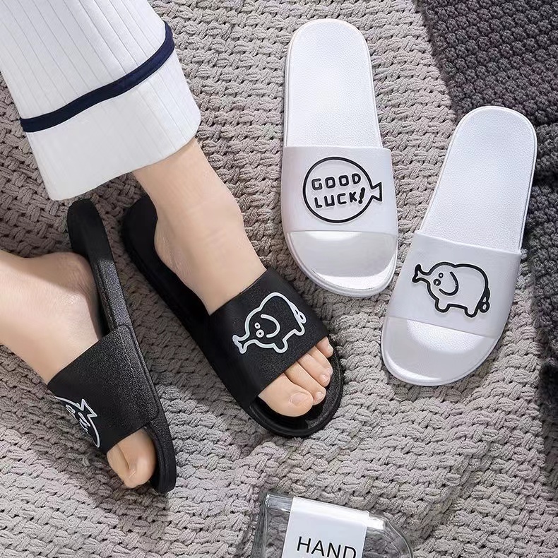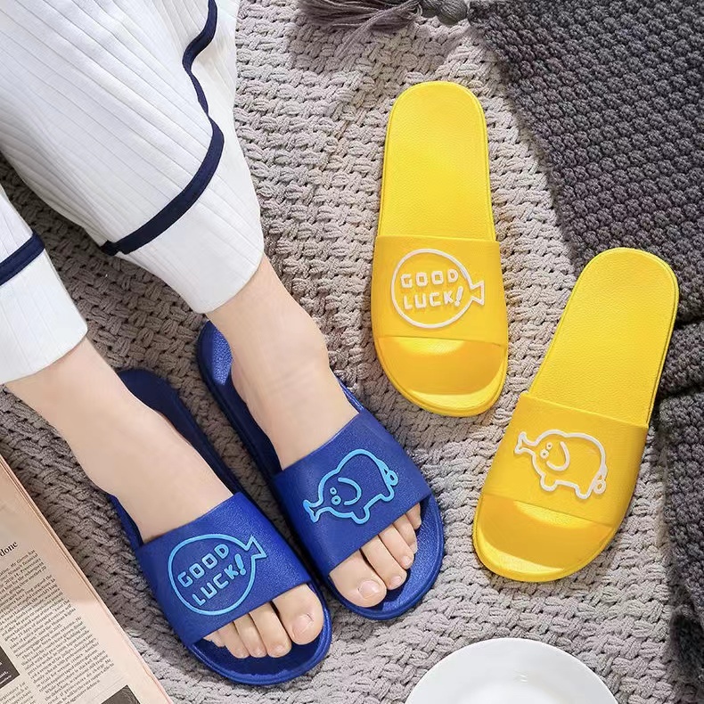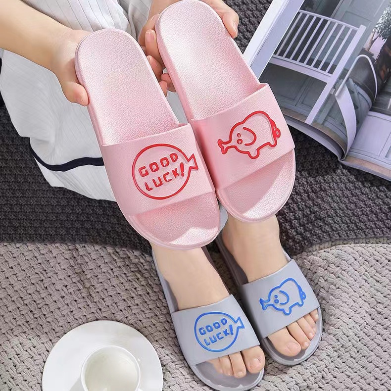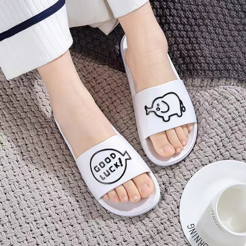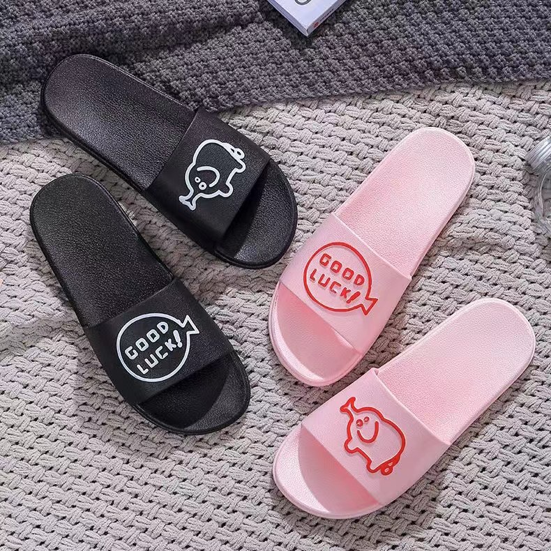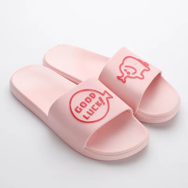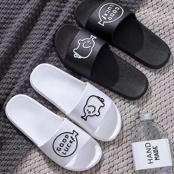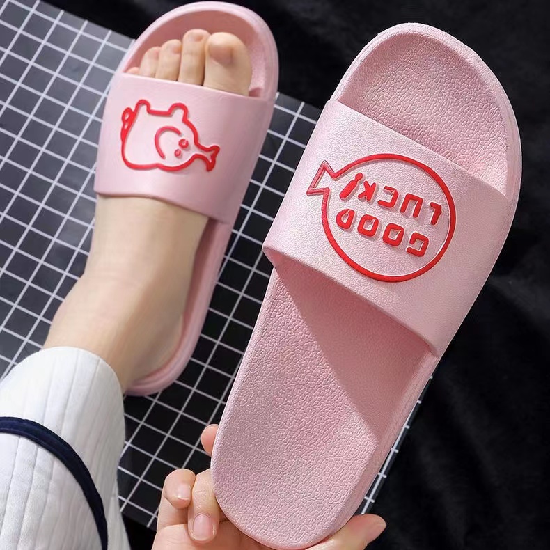 Chao Ruan Indoor Slipper Bathroom Slipper Anti Slip Thick PVC Cartoon English pig Couple Slipper Living Room Slipper