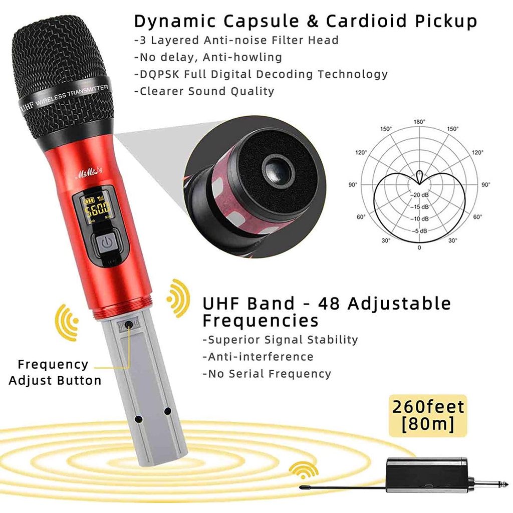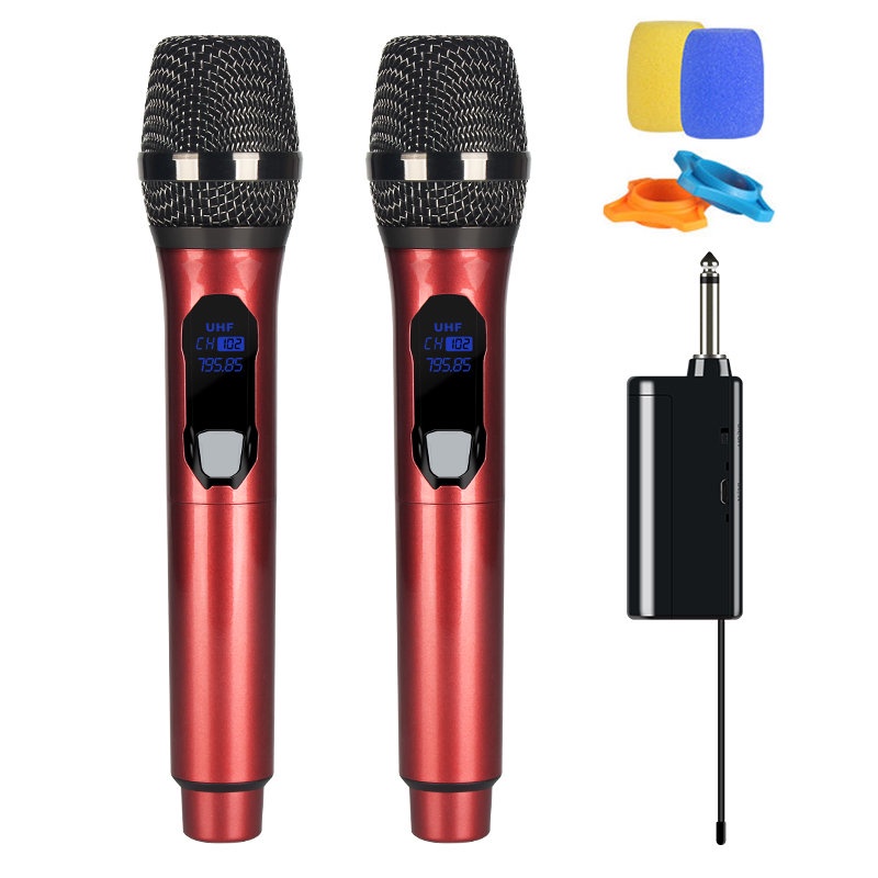 Chargeable UHF Wireless Microphone - Dual Handheld UHF Portable Dynamic System with Rechargeable Mini Receiver, Karaoke Mic for Singing Machine,Home KTV Set,PA,Speaker,Party,Church,Meeting,amplifier