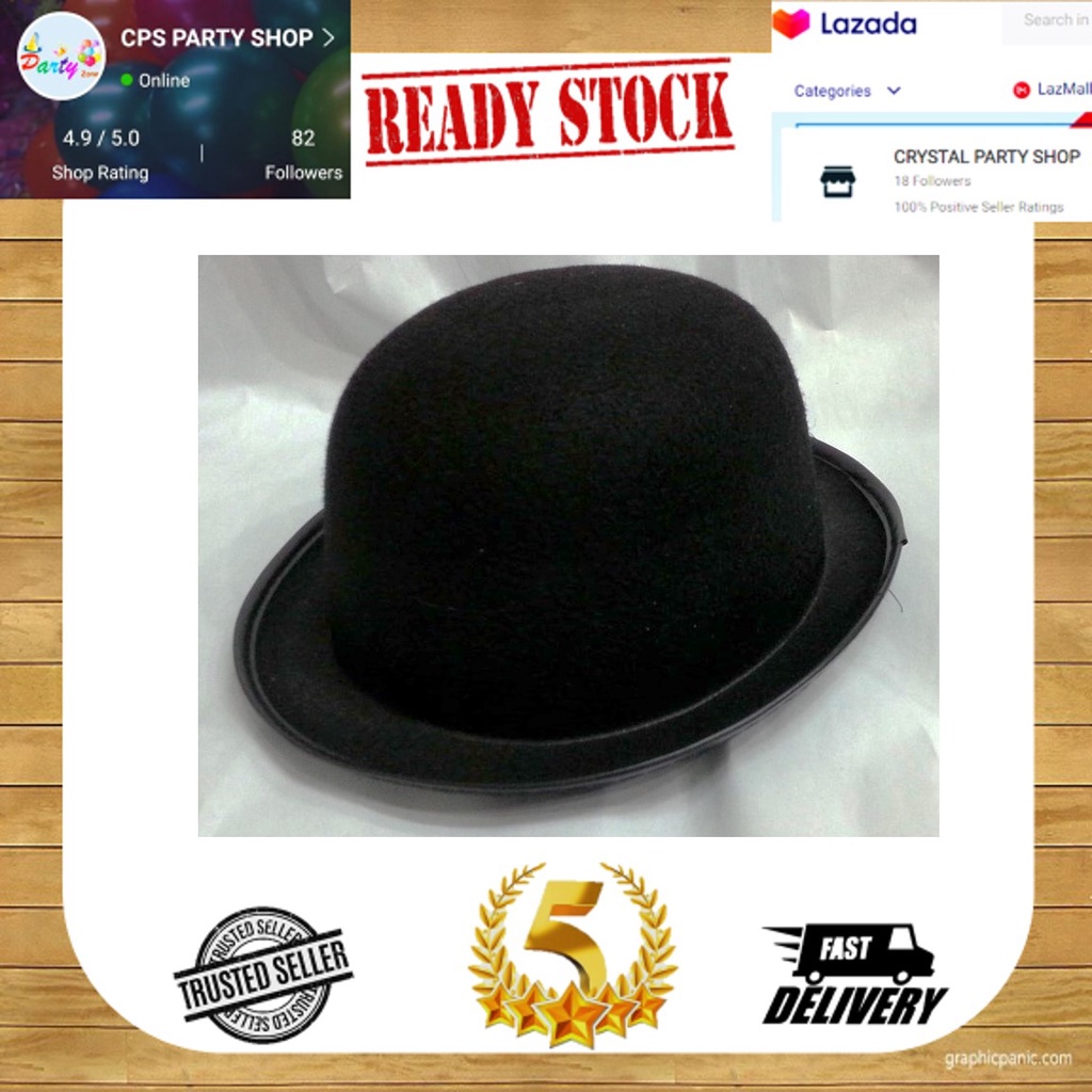 Charlie Chaplin Hat - Party Hat - Party Outfit Hat - Adult Size - READY STOCK KL