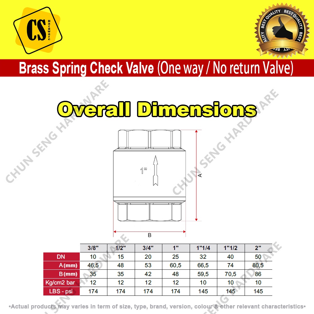 Check Valve Brass Spring Check Valve One Way Valve Non-return Valve 1/2in 3/4in 1in 1 1/4in 1 1/2in 2in for Water System