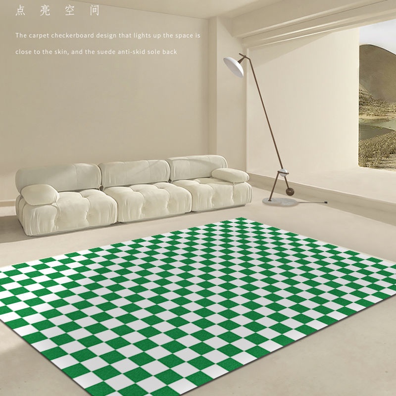 Checkered Carpet Anti Slip Floor Mat, Checkerboard Carpet Bilik Tidur Aesthetic, Living Room Carpet, Bedroom Rug Carpet, Modern Style Decoration, Bedroom Checkered Rug