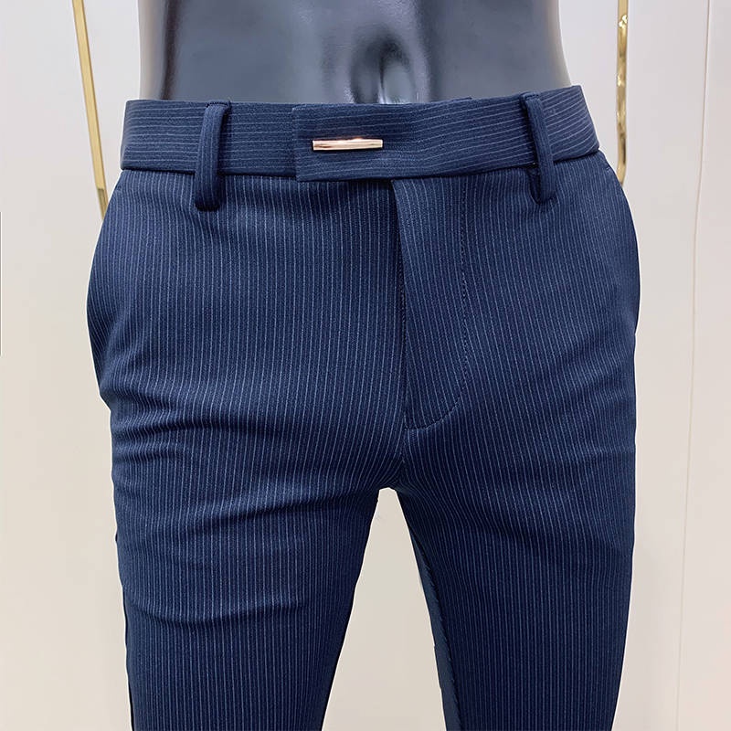 Checkered Pants Men Straight Slim Fit Formal Trousers Elastic high business formal dressing Western pants men's stripes casual trousers men's trend slim feet loose