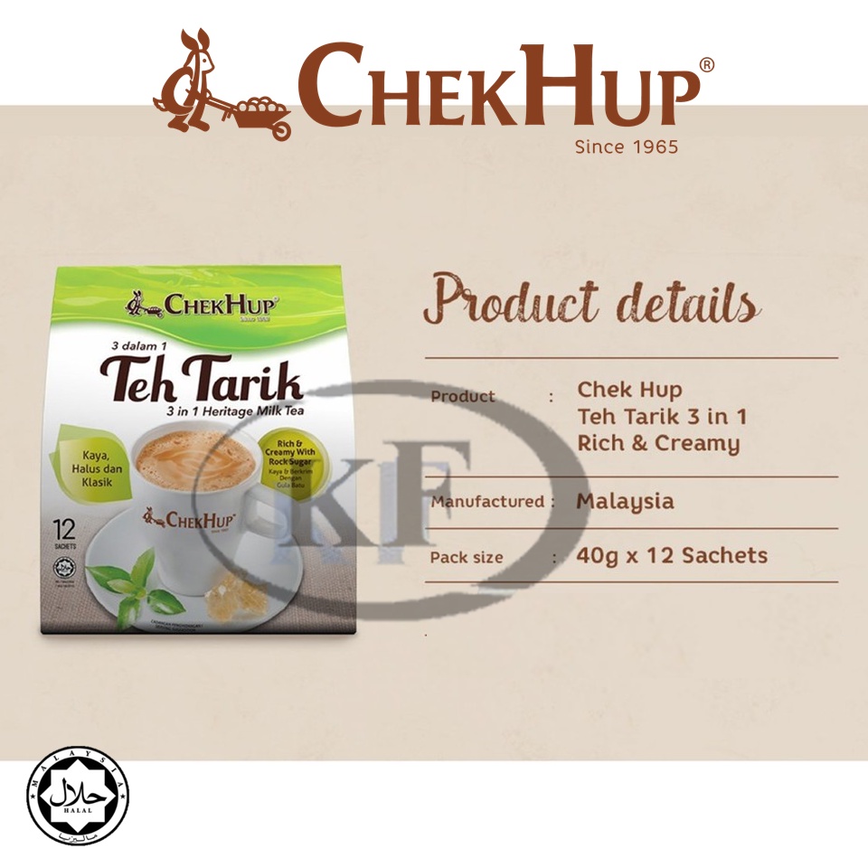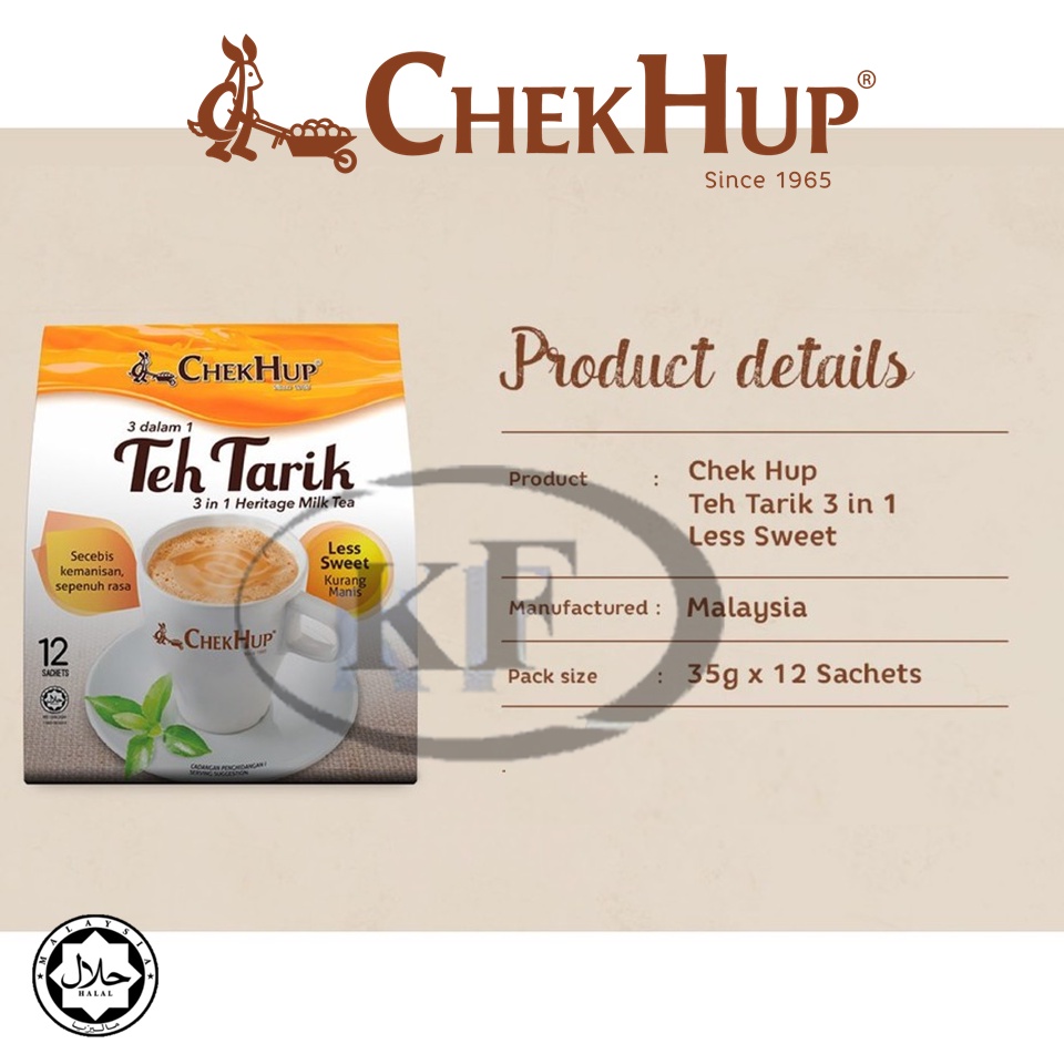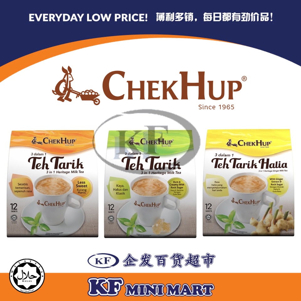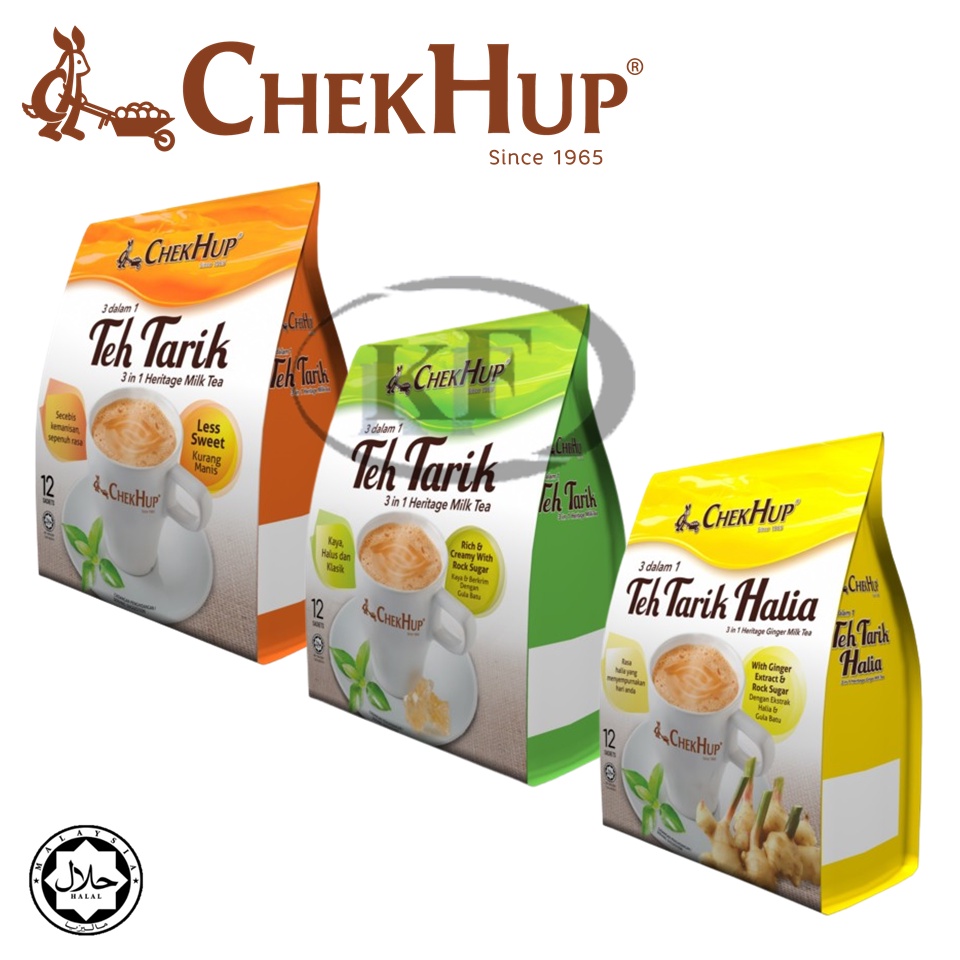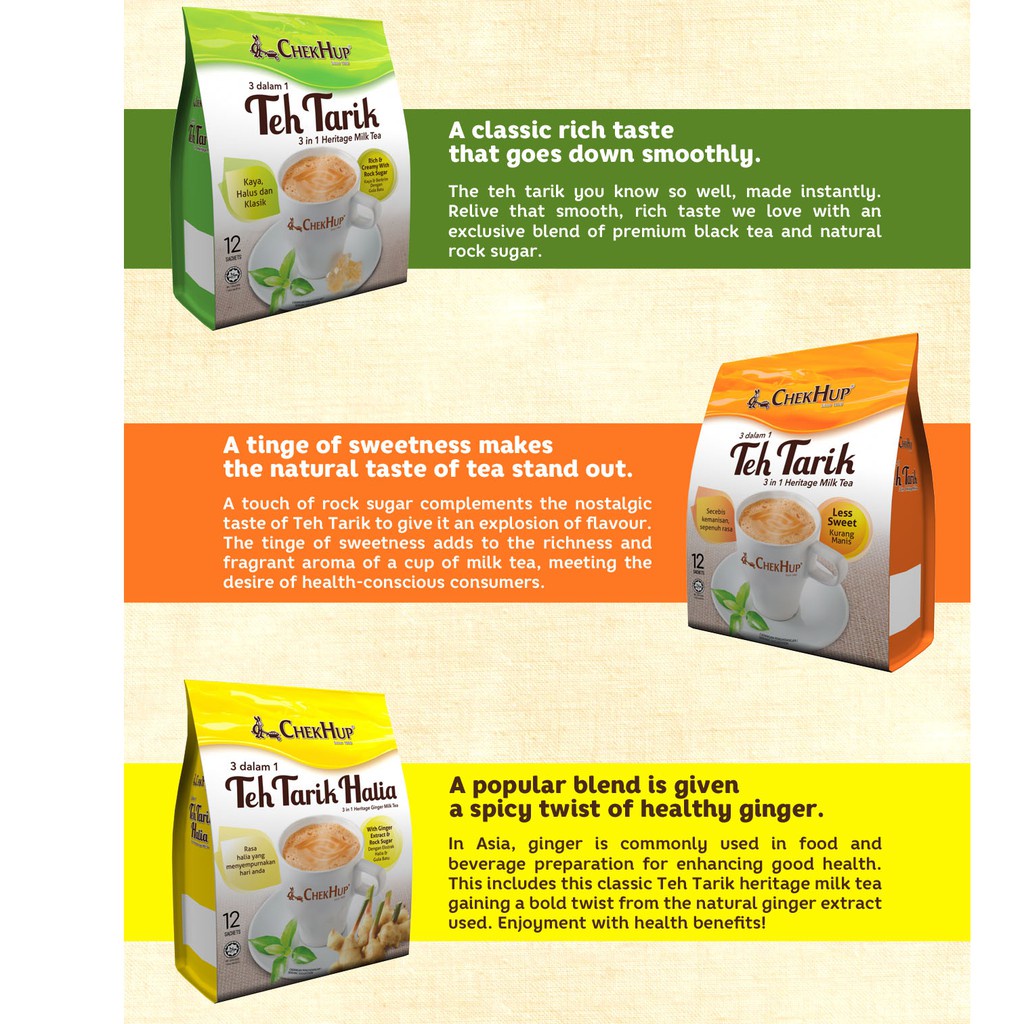 Chek Hup 3 in 1 Teh Tarik Rich & Creamy (40g x 12s) Teh Tarik Less Sweet (35g x 12s) Teh Tarik with Ginger (40g x 12s)