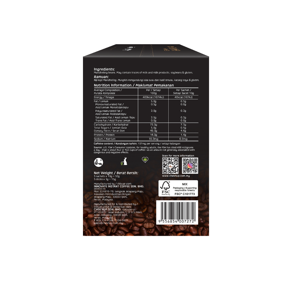 Chek Hup Black Mandheling Gourmet Black Coffee (10g x 5s)