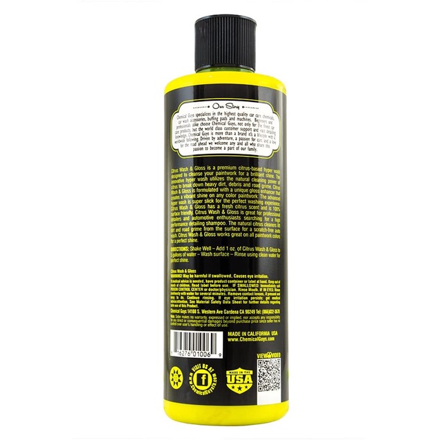 Chemical Guys CWS_301_16 Citrus Wash & Gloss Foaming Car Wash Soap 16 oz / 473 ml Lemon/Citrus Scent