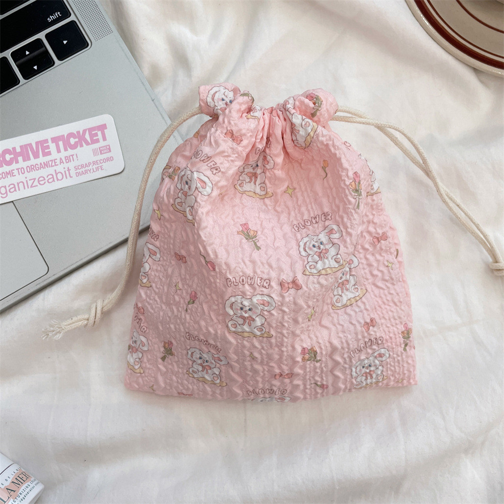 Cherry Blossom Pink Flower Drawstring Drawstring Pocket Cute Little Bear Bunny Mini Organizing Bag Cartoon Multifunctional Lipstick Coin Storage Bag New Style Anti-dust Mini Cloth Bag Candy