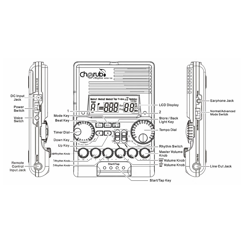 Cherub WRW-106 Rhythm Machine Digital Metronome Voice Counting / Tap Tempo Drum Piano Guitar Violin (WRW106)