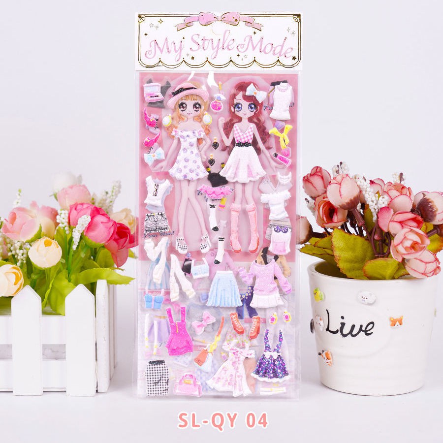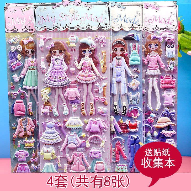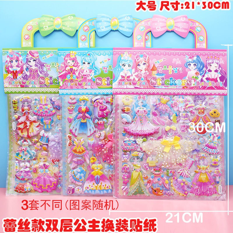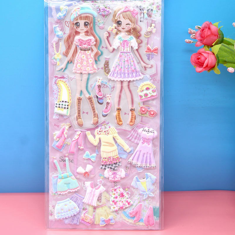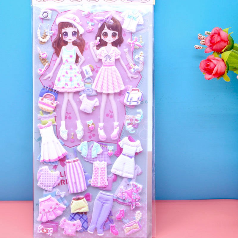 Children's Dressing up Stickers Cute High Quality Sponge Cartoon Stereo Bubble Sticker Girl Princess Dress up