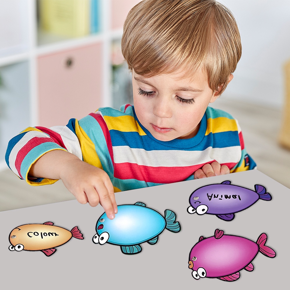 Children's Magnetic plastics Fishing Toy Fishing Game Double Sides Erasable Fish Cards 16 Pcs Early Learning Educational Parent-child Interactive Preschool Toys