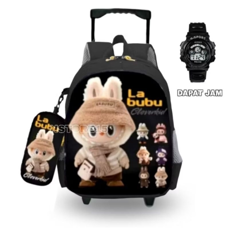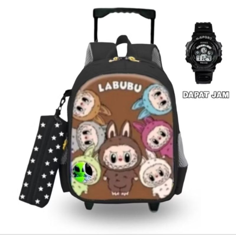 Children's Trolley Bag, Elementary School Trolley Bag with Pumpkin Motif, Labubu Doll Trolley Backpack, Free Watch + Pencil Case
