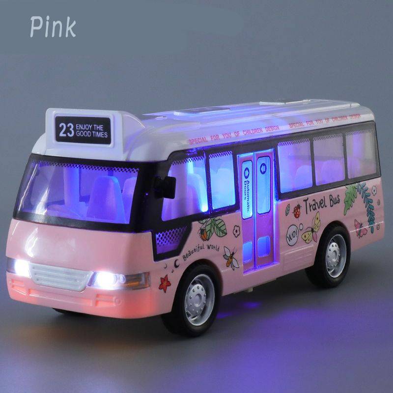 Children's sound and light bus toy car inertia resistance to fall simulation bus boy baby open door bus model