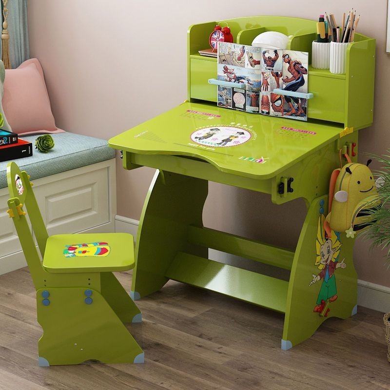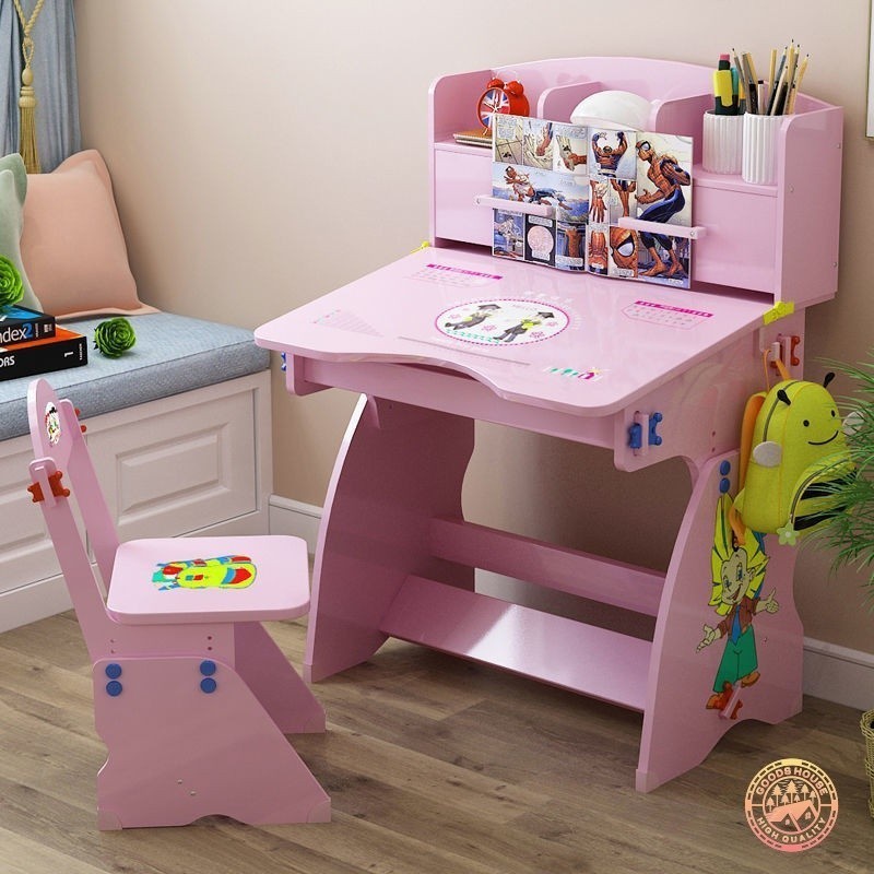 Children's study table and chair set student boy girl writing desk lifting desk bookcase meja kanak-kanak