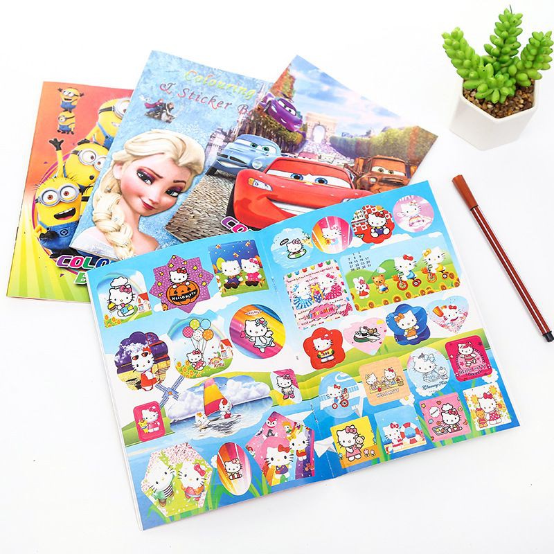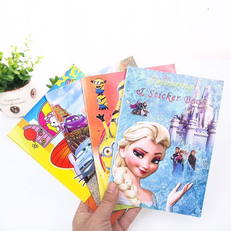 Children Colouring Book Disney Cartoon Sticker Kid Fun Sticker Book Color Book Buku Mewarna Budak Pelekat Kartun