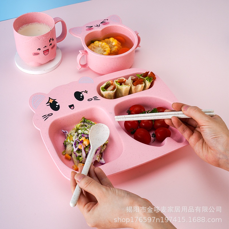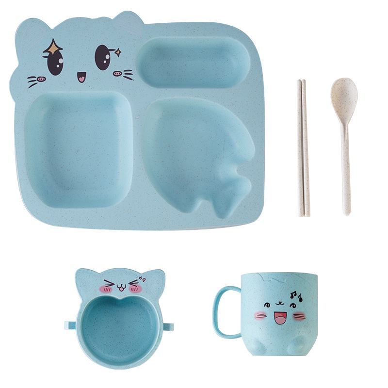 Children Meal Set/Children Baby Tableware Plate Set with Utensils (Bowl/Plate/Cup/Fork/Spoon)