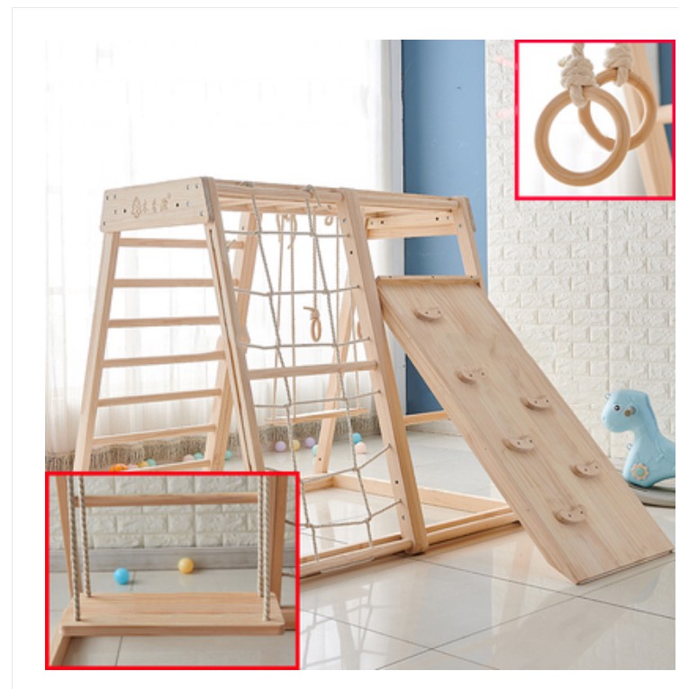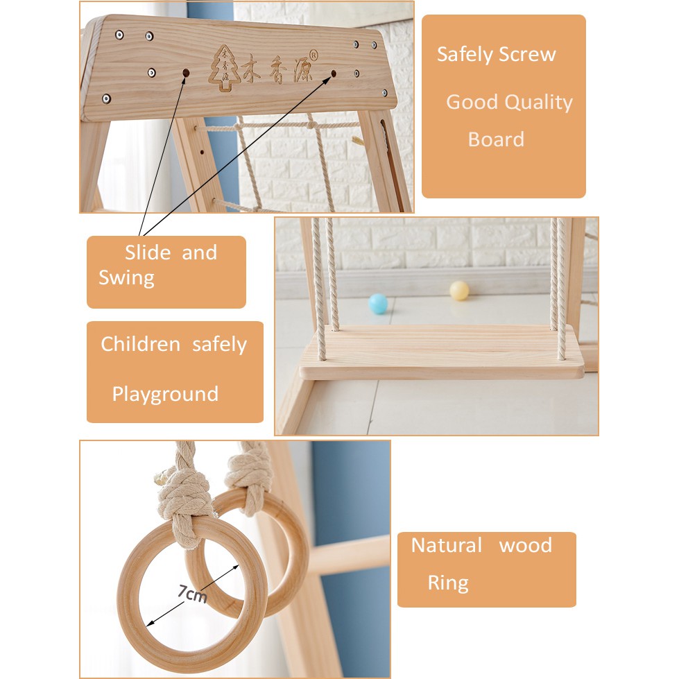 Children Wooden Climbing Frame Slide Swing Playground Outdoor Relax Indoor Fun Toy Park