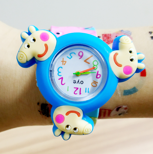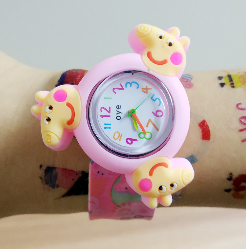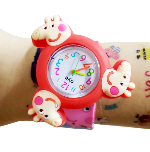 Childrens Unisex Peppa Pig Silicone Slap Pop Wrist Watch Cartoon Analog Quartz For Kids
