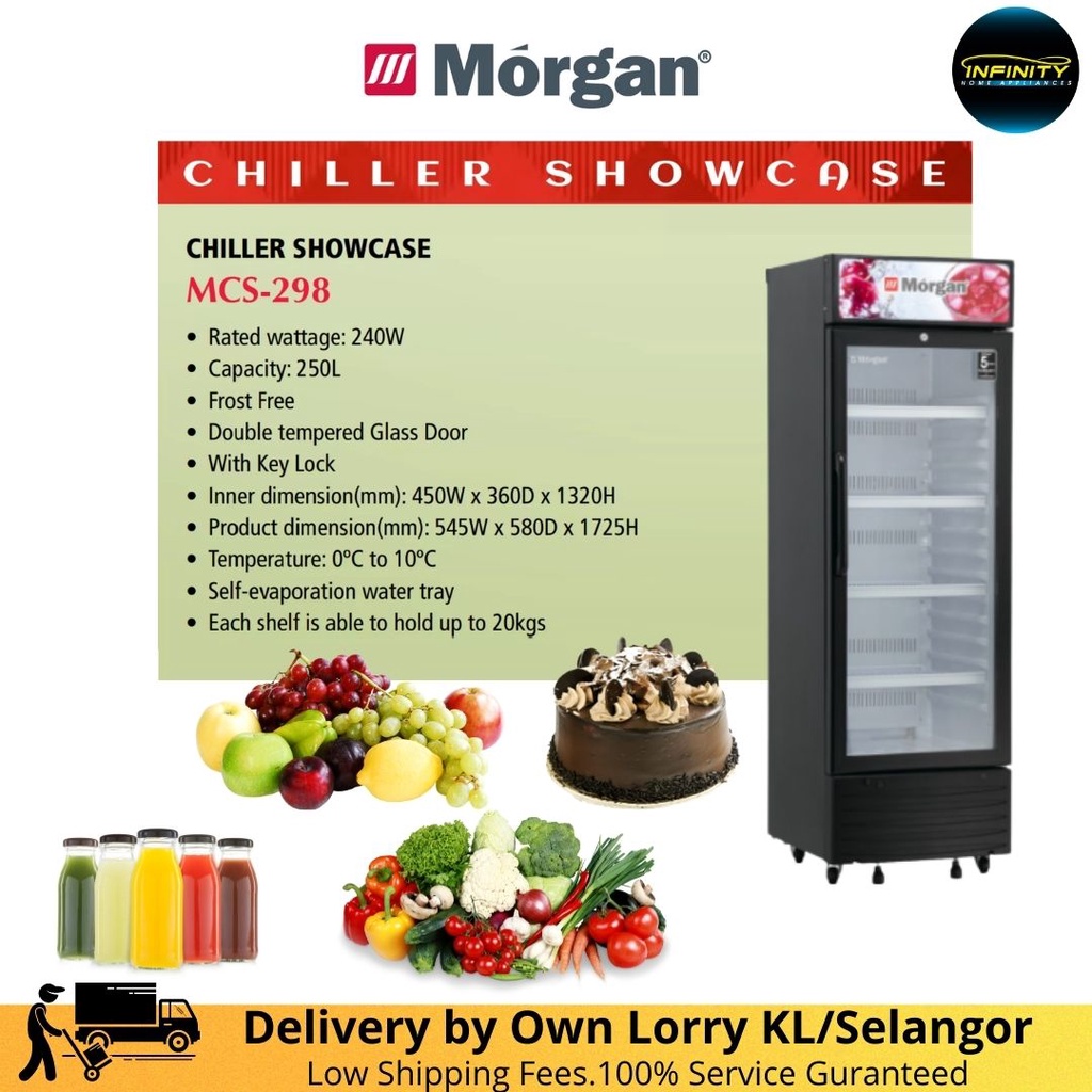 Chiller Morgan MCS 298 250L Showcase Display Chiller (Frost Free ) with Tempered Glass Door Peti Sejuk Cermin