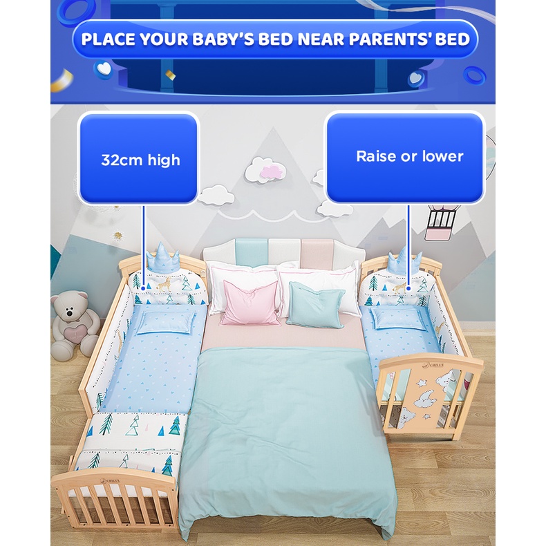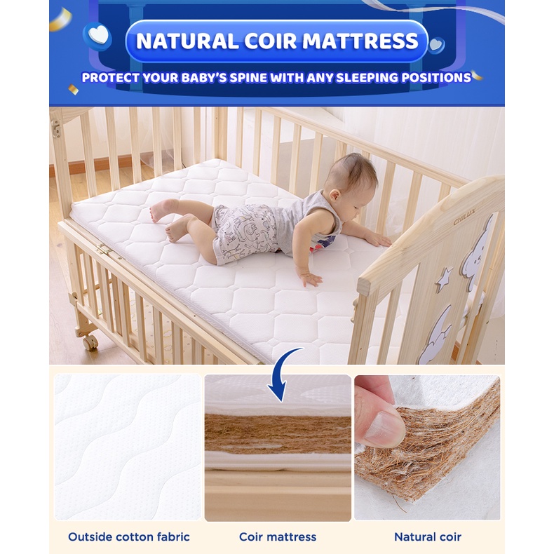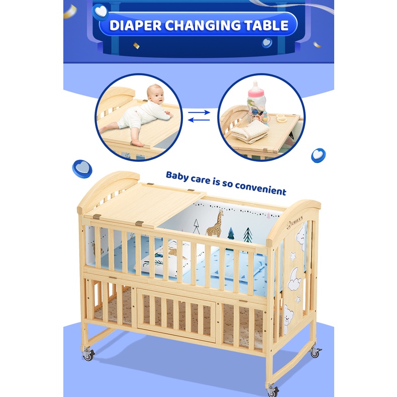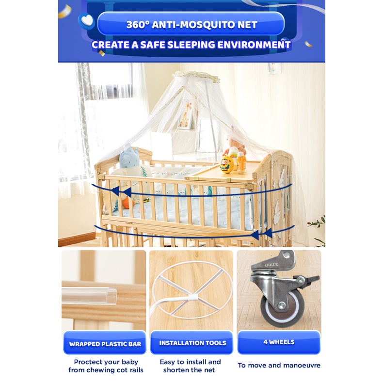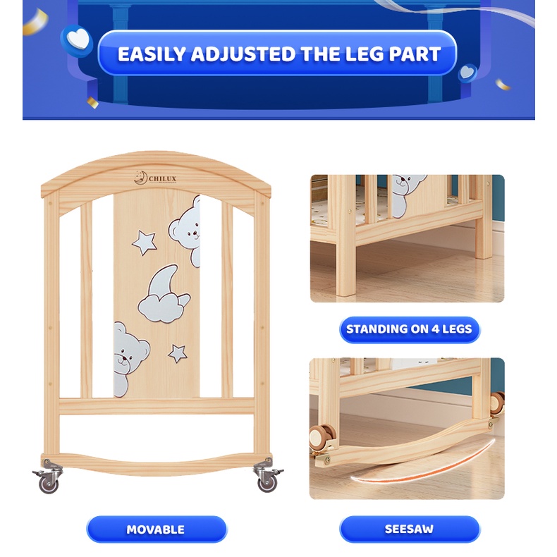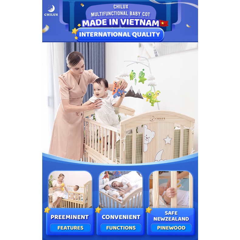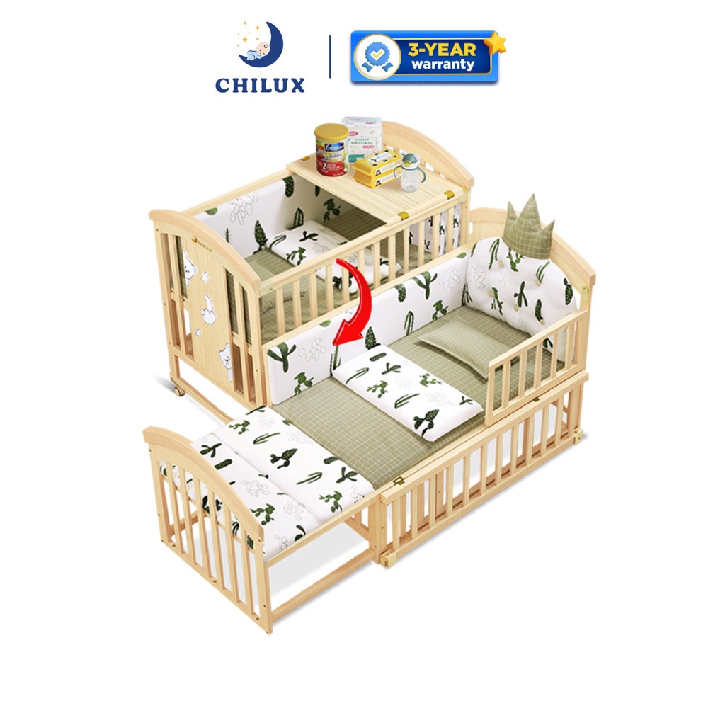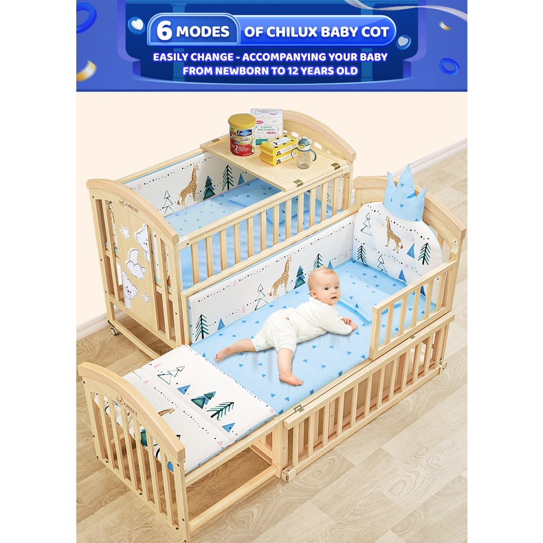 Chilux Peace Natural 6 Mode Multifunctional Baby Cot Newzealand Pine Wood