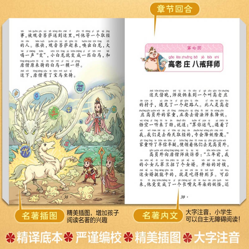 Chinese China Four Classics Masterpiece Books Easy Version with Pinyin Picture for Beginners: Journey To The West, Three Kingdoms, The Water Margin, Dream of Red Mansions