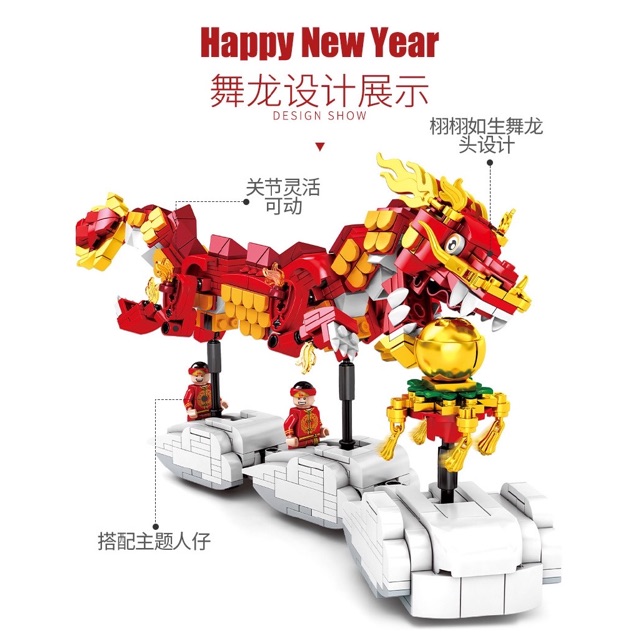 Chinese New Year Dragon Dance Building Bricks and Blocks sembo (726pcs)