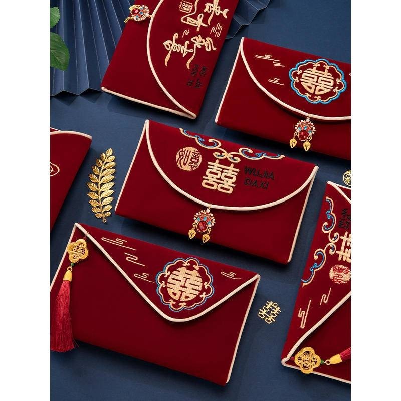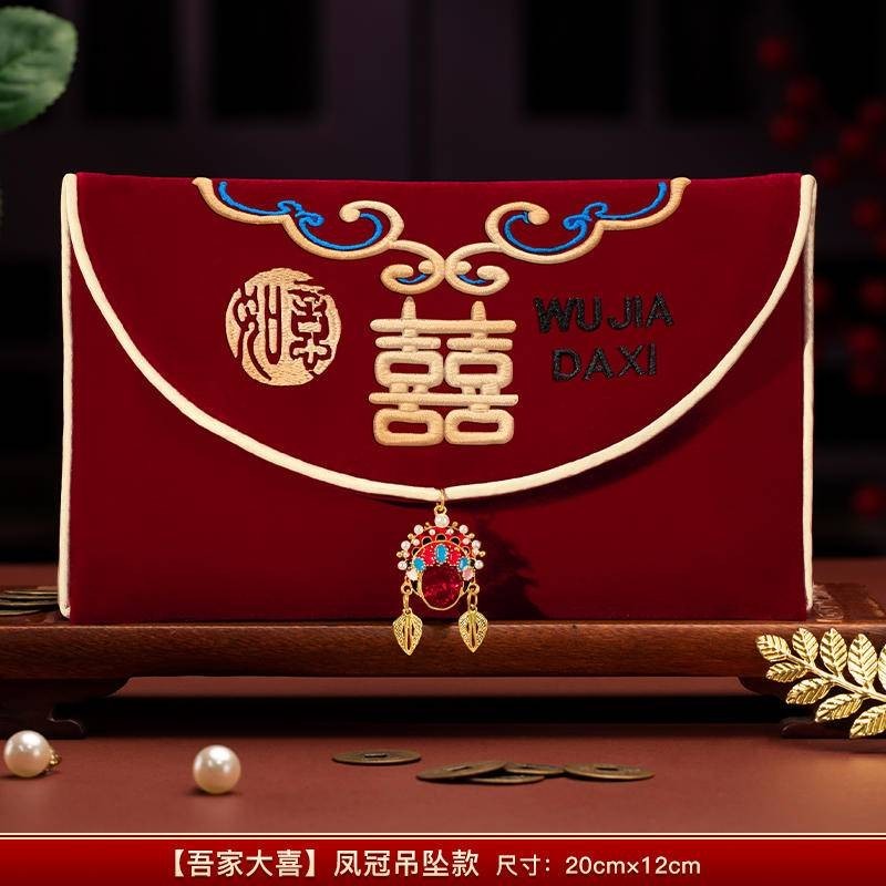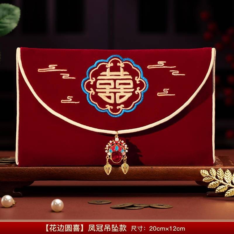Chinese Wedding Angpao Packet Cloth Envelope Money Angpau Red Packet Xi Angpow Packets Angbao Hong Bao Angpaw Big 2025 Dowry Bag Double Happiness Ang Pow Pouch Gift