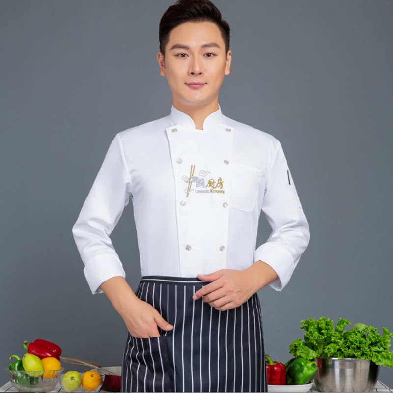 Chinese style chef work uniform long-sleeved men's and women's hotel restaurant western restaurant chef's uniform short-sleeved bakery cake shop work uniform chef uniform