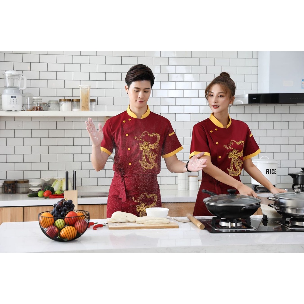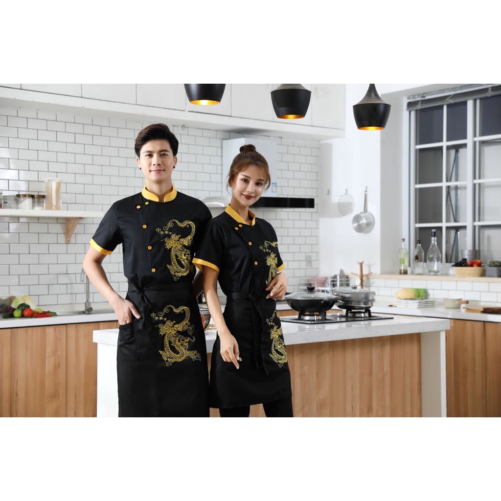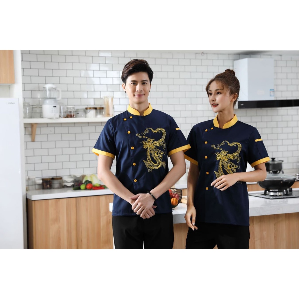 Chinese style short sleeve Chef Uniform Embroidered dragon Hotel working wear Restaurant work clothes Tooling uniform cook Tops
