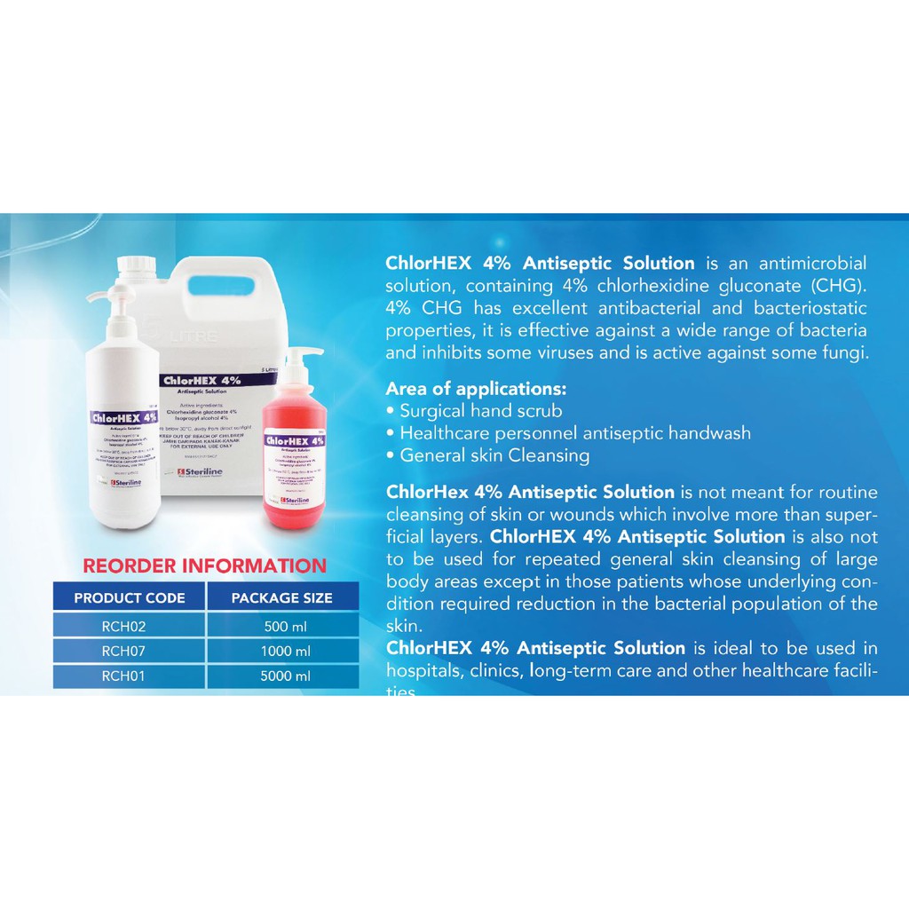 Chlorhex 4%, Antiseptic Chlorhexidine Solution Hand Wash (500ml/1000ml)