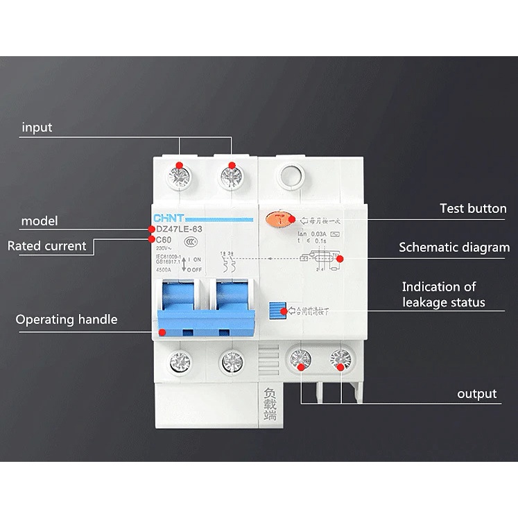 Chnt circuit breaker dz47le-32 63 2P C 10A16A20A25A32A40A 230V leakage protection miniature home air breaker Miniature circuit breaker