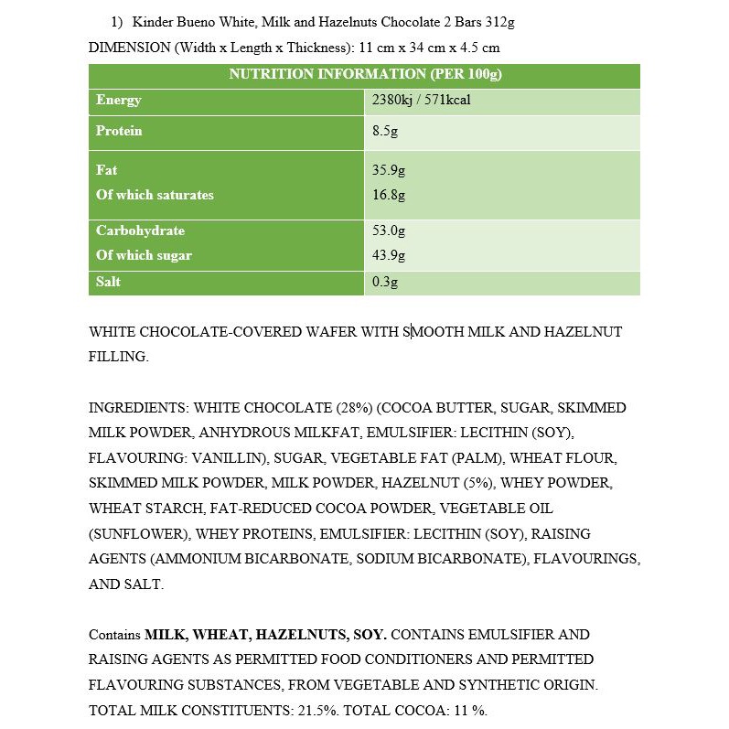 Chocolate Kinder Bueno White Milk Chocolate and Hazelnuts Chocolate 312g Coklat