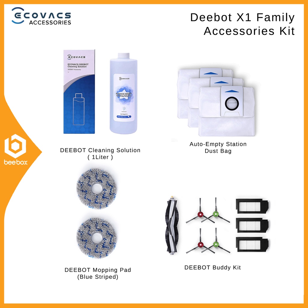 Ecovacs Deebot X1 Family - Accessories Kit, Mop Cloth, Cleaning Solution, & Dustbag | X1 OMNI / X1 TURBO