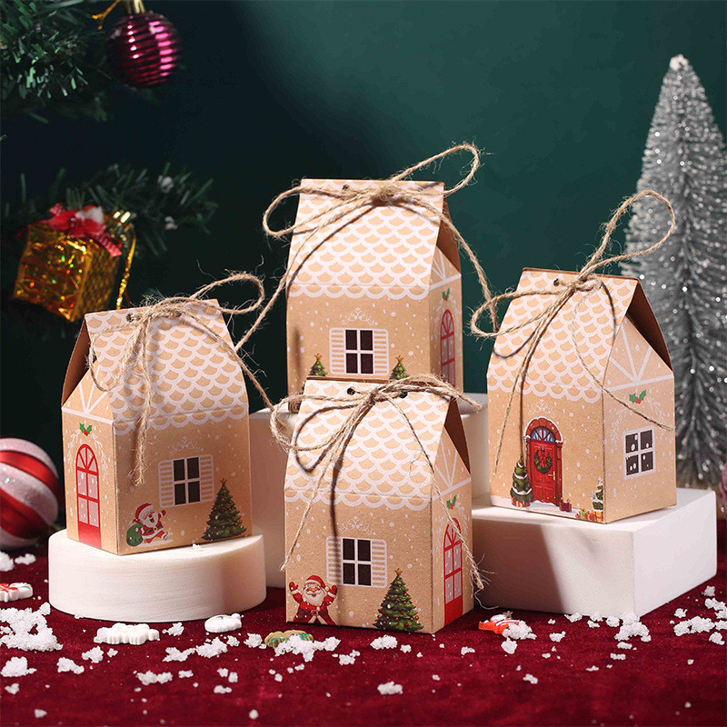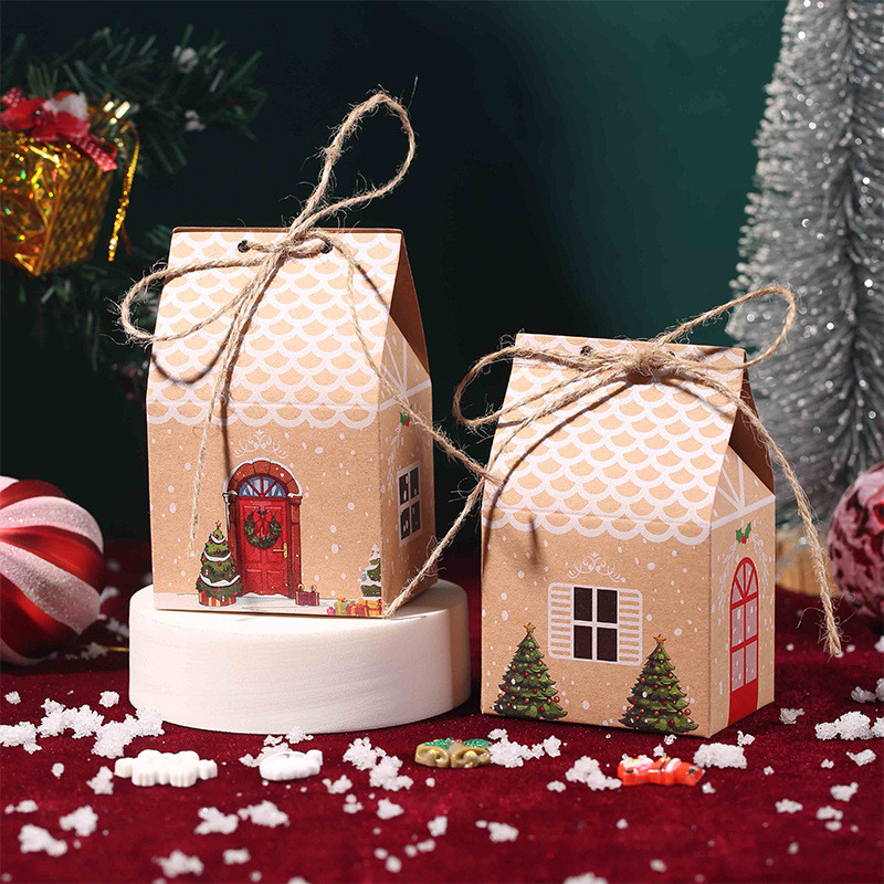 Christmas Kraft Paper Candy Box Christmas Small House Candy Snack Box