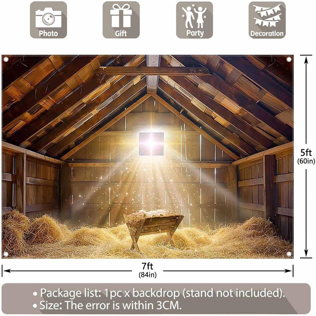 Christmas Manger Scene Backdrop Birth of Jesus Nativity Holy Family Photography Background Barn Stable Christian Party Decor Photo Props