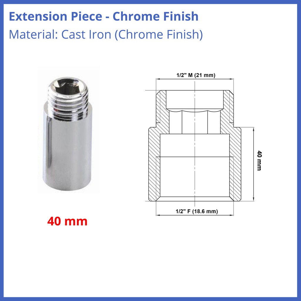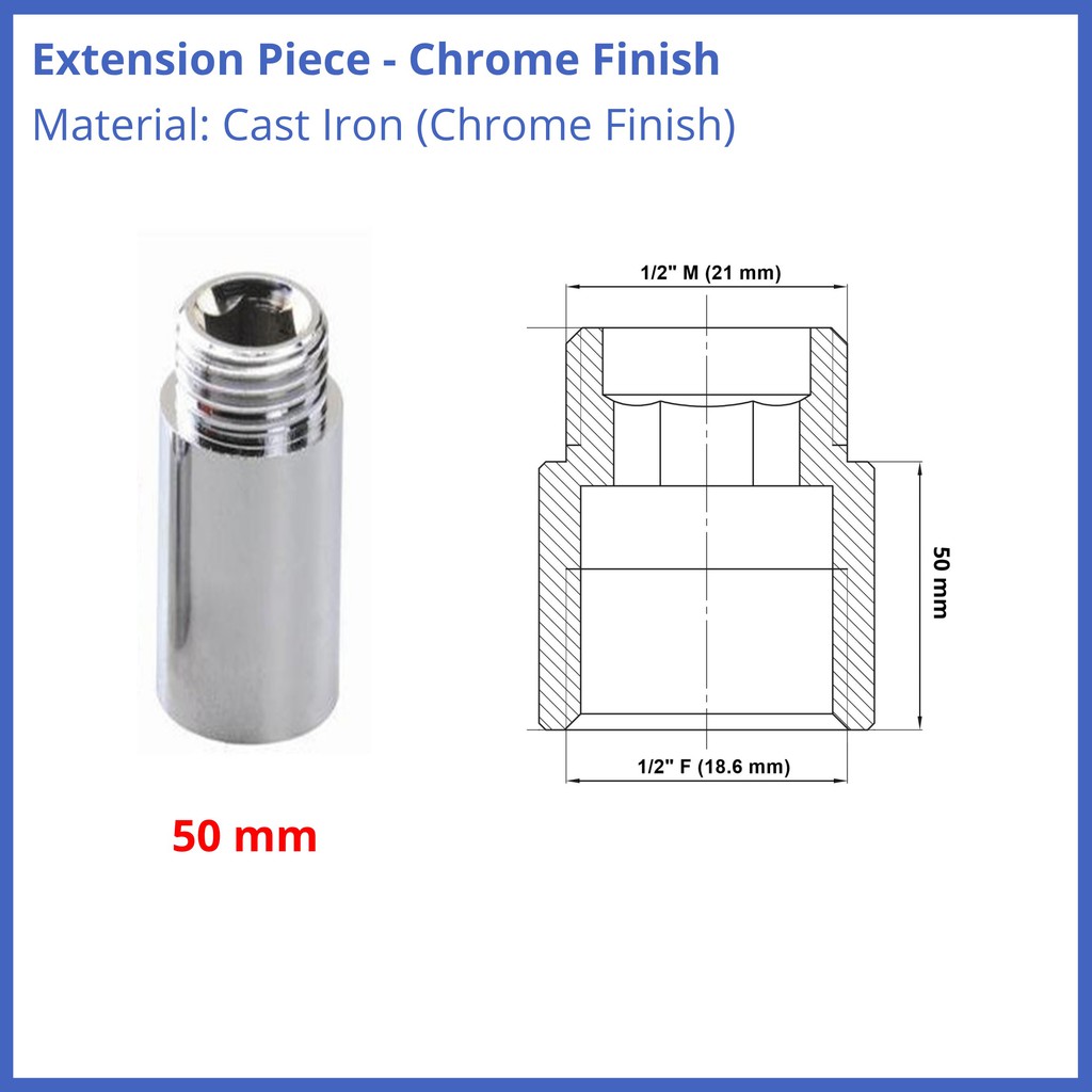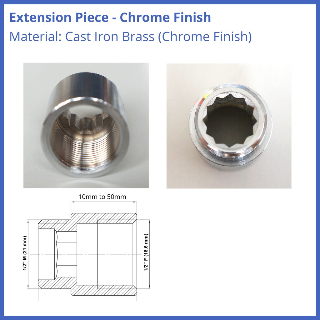Chrome Pipe Thread Extension Nipple 1/2" BSP Female x Male Various Sizes HIGH Quality 10mm 15mm 20mm 30mm 40mm 50mm