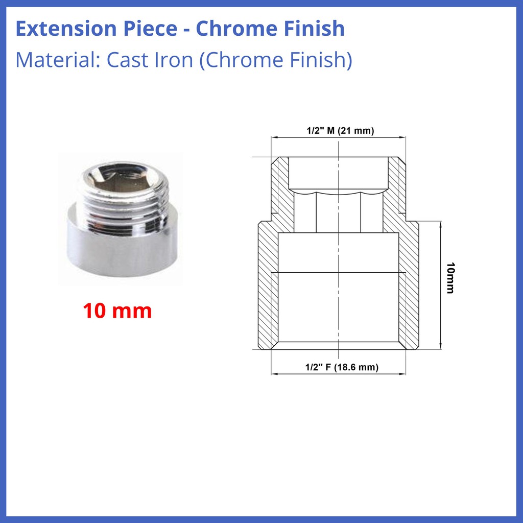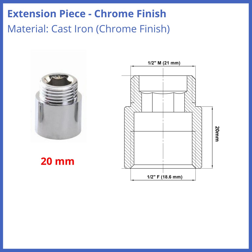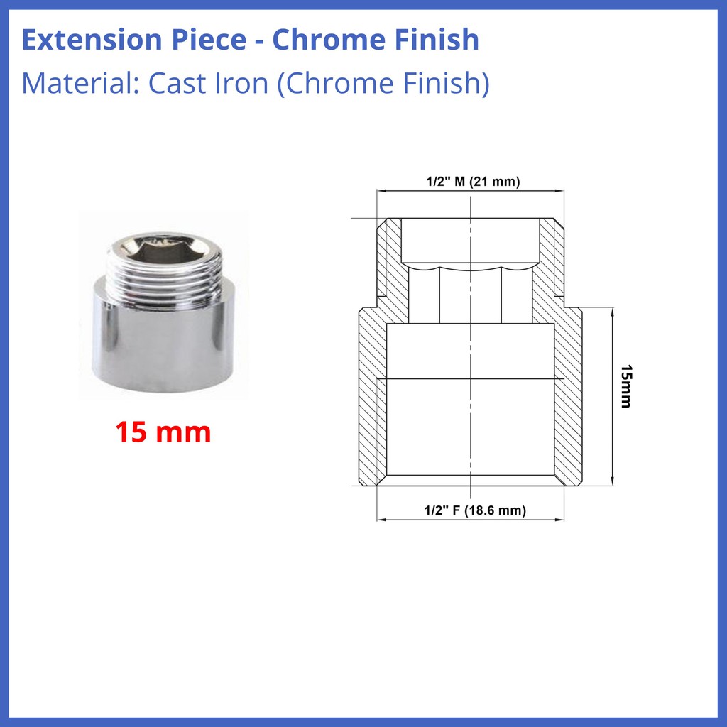 Chrome Pipe Thread Extension Nipple 1/2" BSP Female x Male Various Sizes HIGH Quality 10mm 15mm 20mm 30mm 40mm 50mm