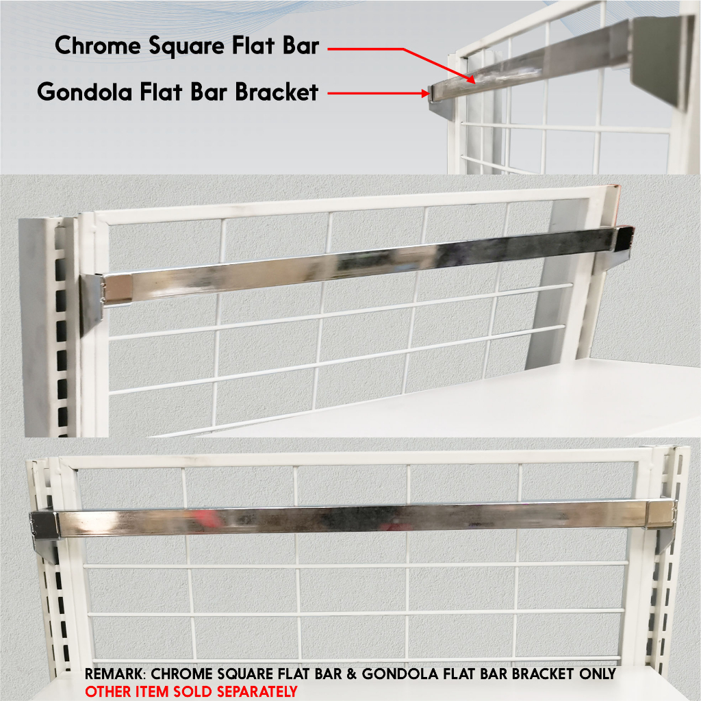 Chrome Square Flat Bar & Gondola Flat Bar Bracket