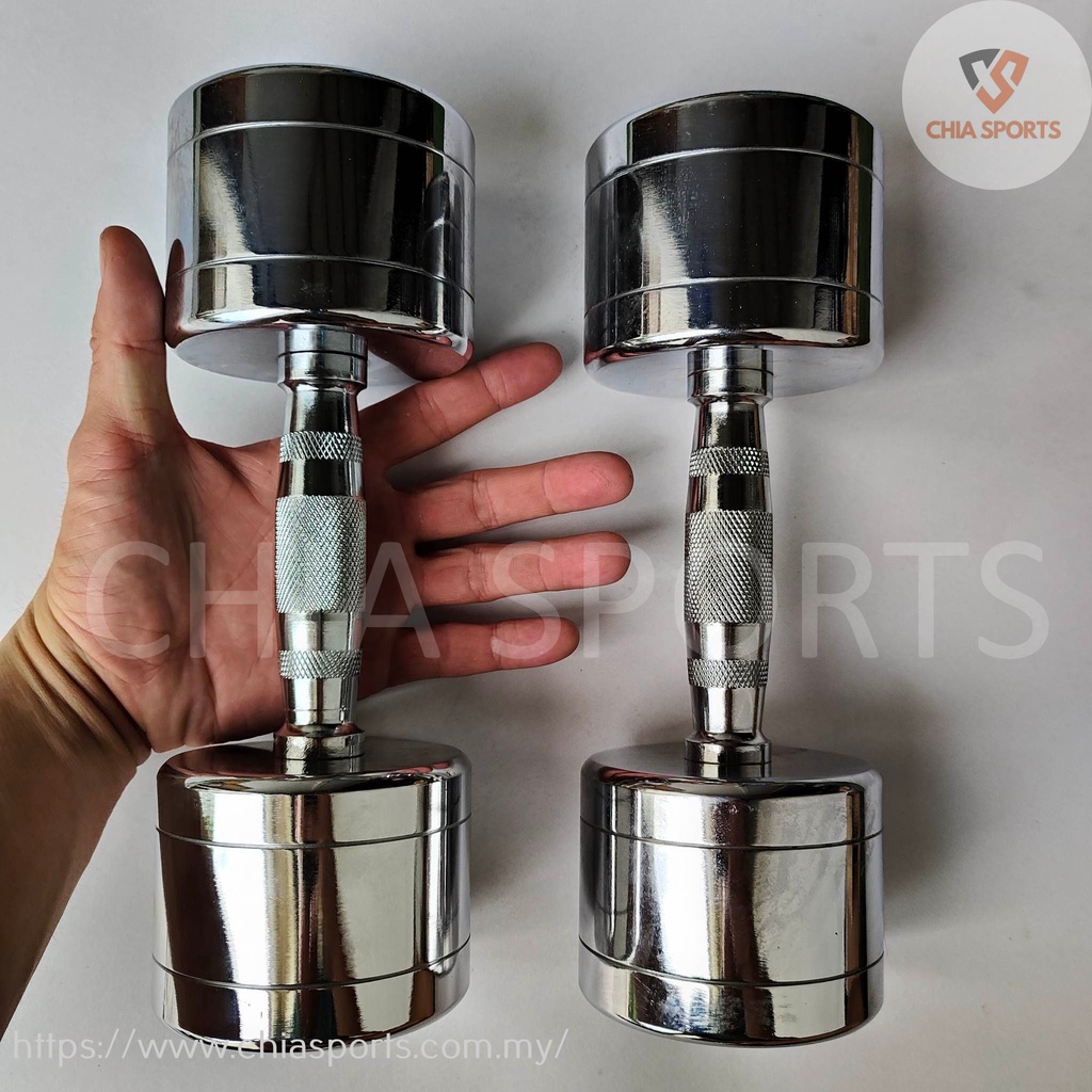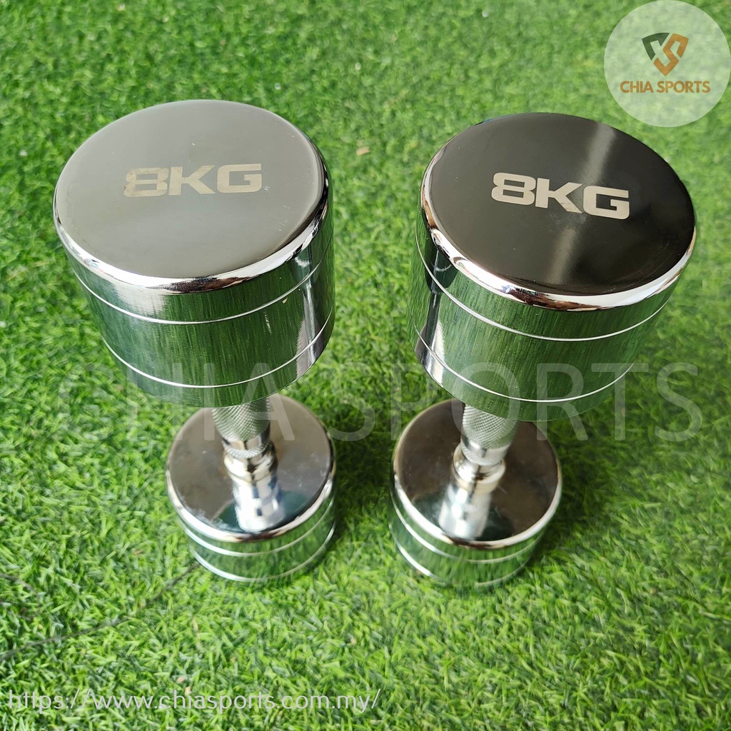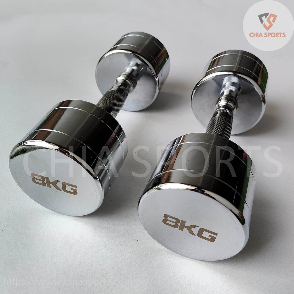 Chrome Steel Dumbbell 8kg with Contoured Handle Weight Round Dumbbells Commercial Equipment