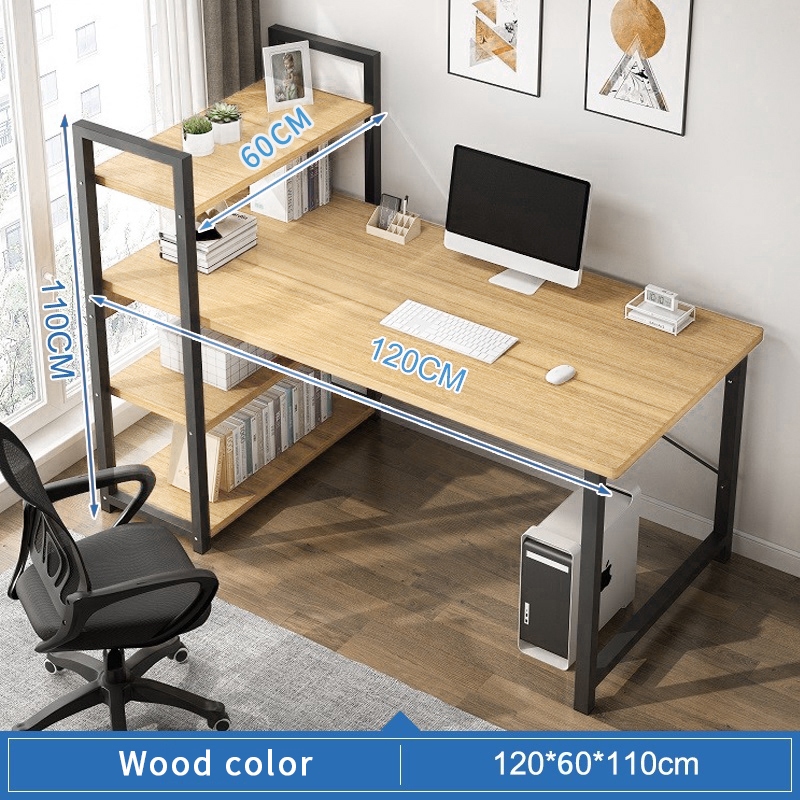 CiCi Multipurpose meja computer table study Writing Dekstop Table Computer desk Meja Tulis Meja Komputer dengan Rak Table with Rack 4 Tiers Book Shelf