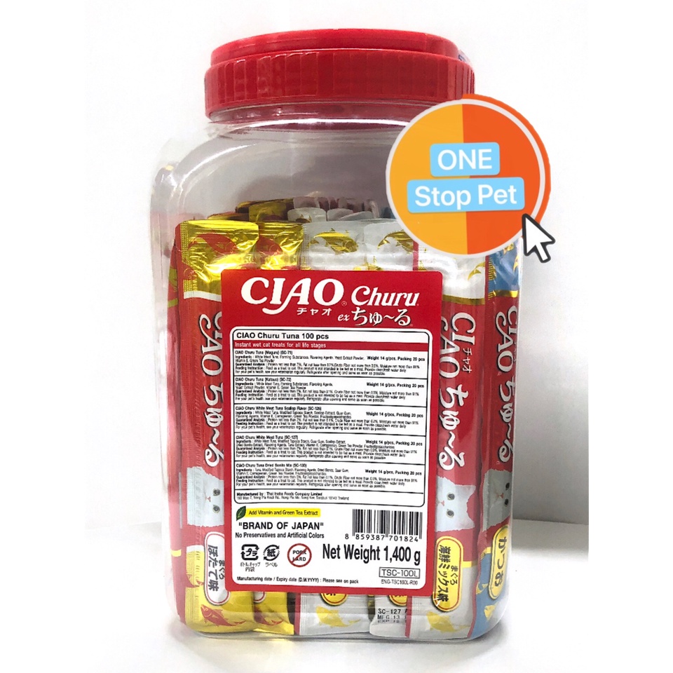 【+ FREE GIFT】Ciao Chu ru - Ciao Stick 14g x 100 pcs ( Tuna Variety) TSC-100L - Ciao Chu Ru 100