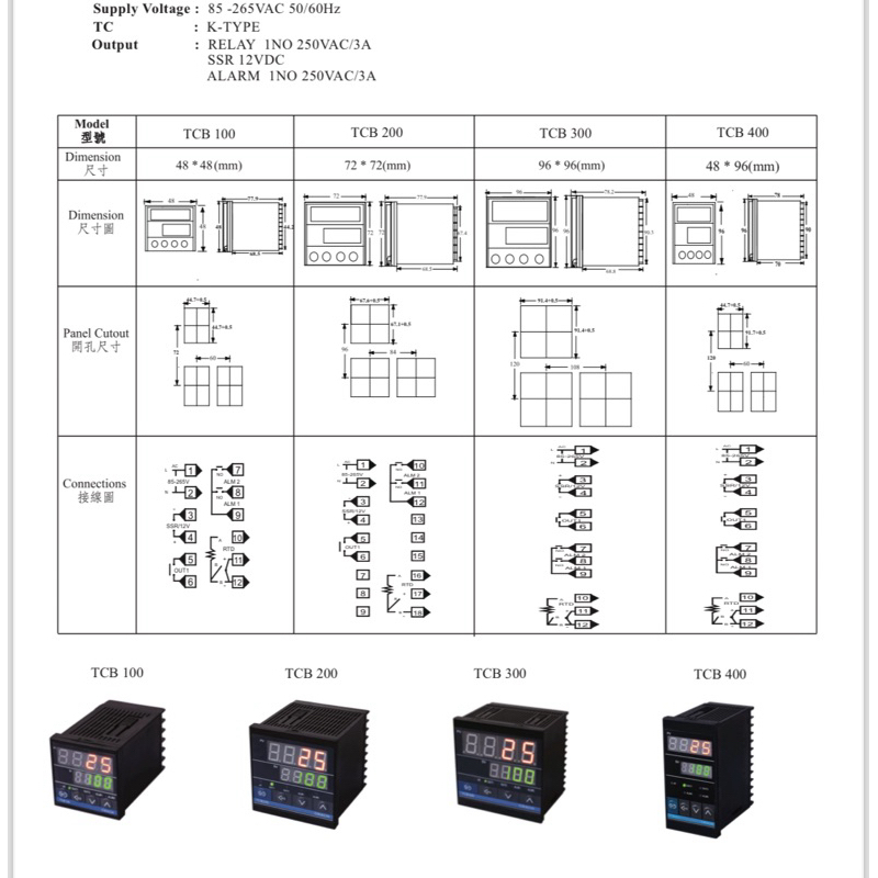 Cikachi Temperature Controller TCB100 TCB200 TCB300 TCB400 240VAC K-TYPE OUTPUT : RELAY/SSR/ALARM 400C