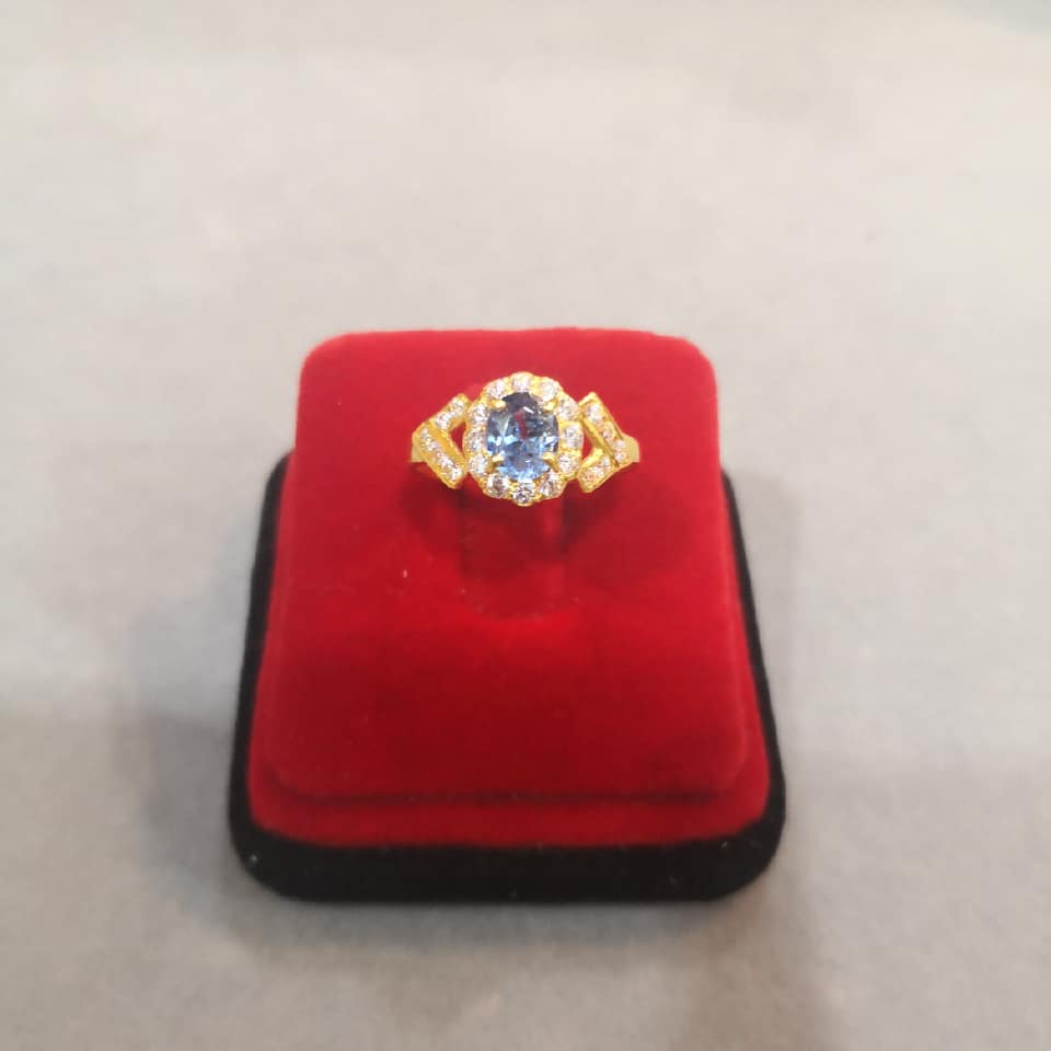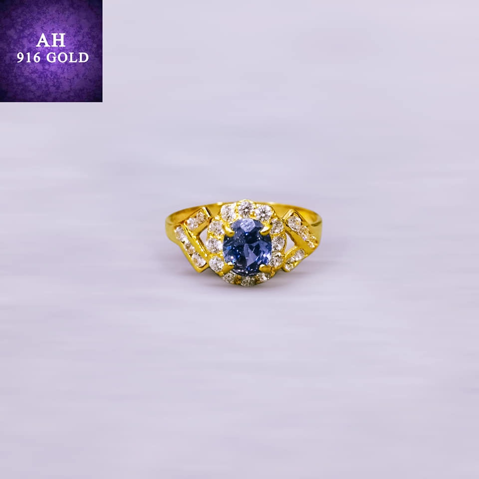 Cincin Tunang Emas 916 Permata Biru Size 17/Merisik/Kahwini/Nikah/Engagement Ring