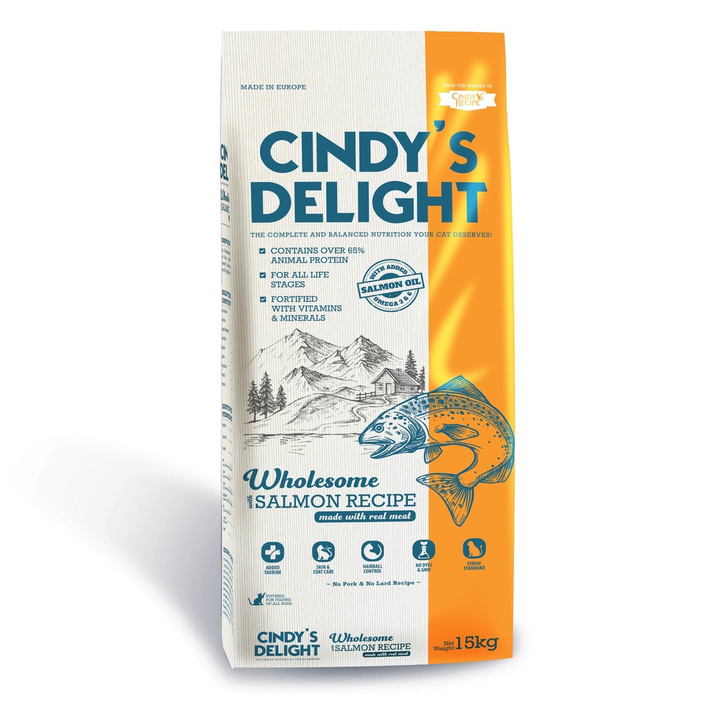 Cindy's Recipe Delight Dry Food 15kg -Chicken/Salmon /Makanan Kering Berkualiti Kucing /Anak Kucing