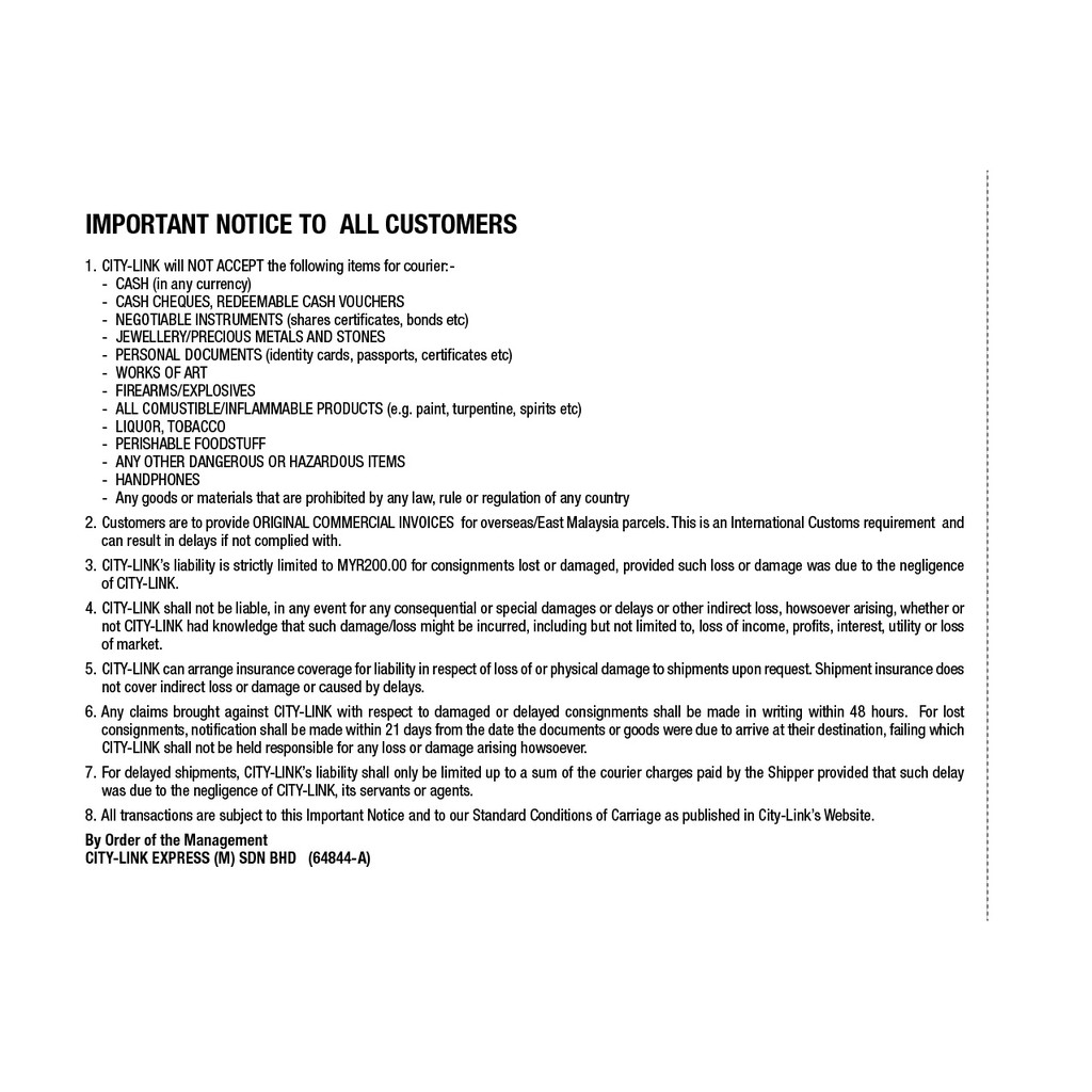 City-Link Express Prepaid Document Within Selangor & Kuala Lumpur Sticker (1kg/10 Pcs)